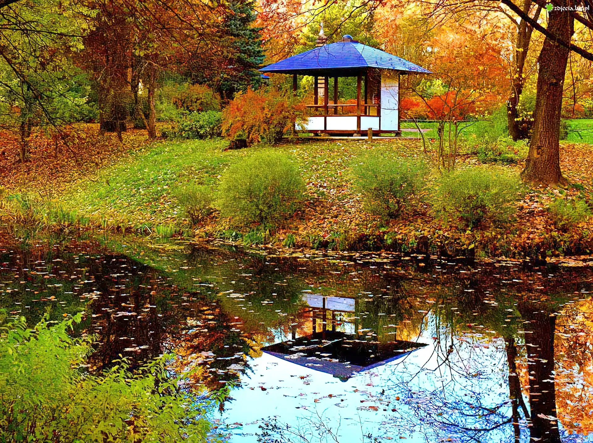 Zdjęcie Jesień, Park, Rzeka, Odbicie, Lustrzane