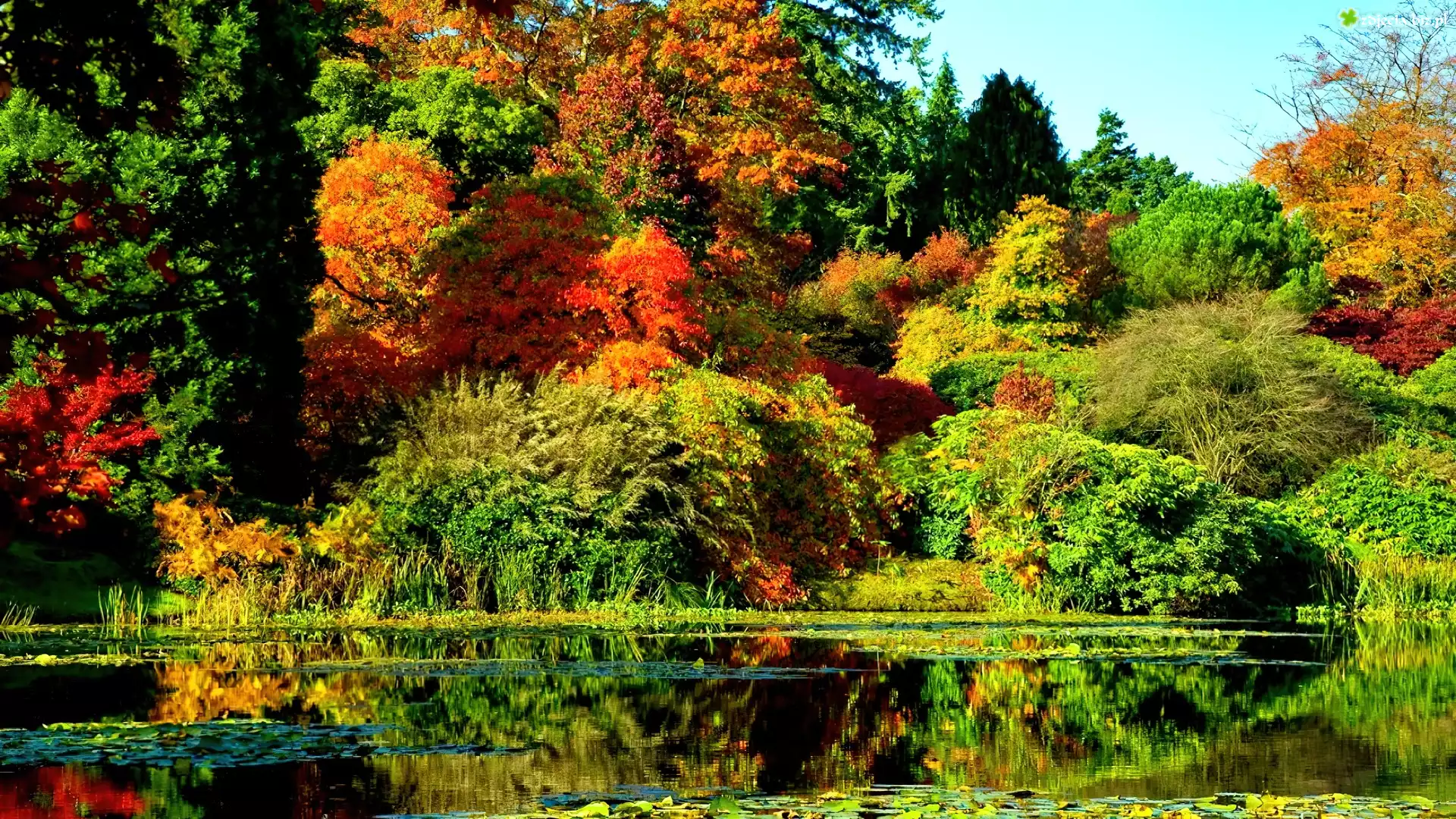 Zdjęcie Jesień, Staw, Odbicie, Drzew