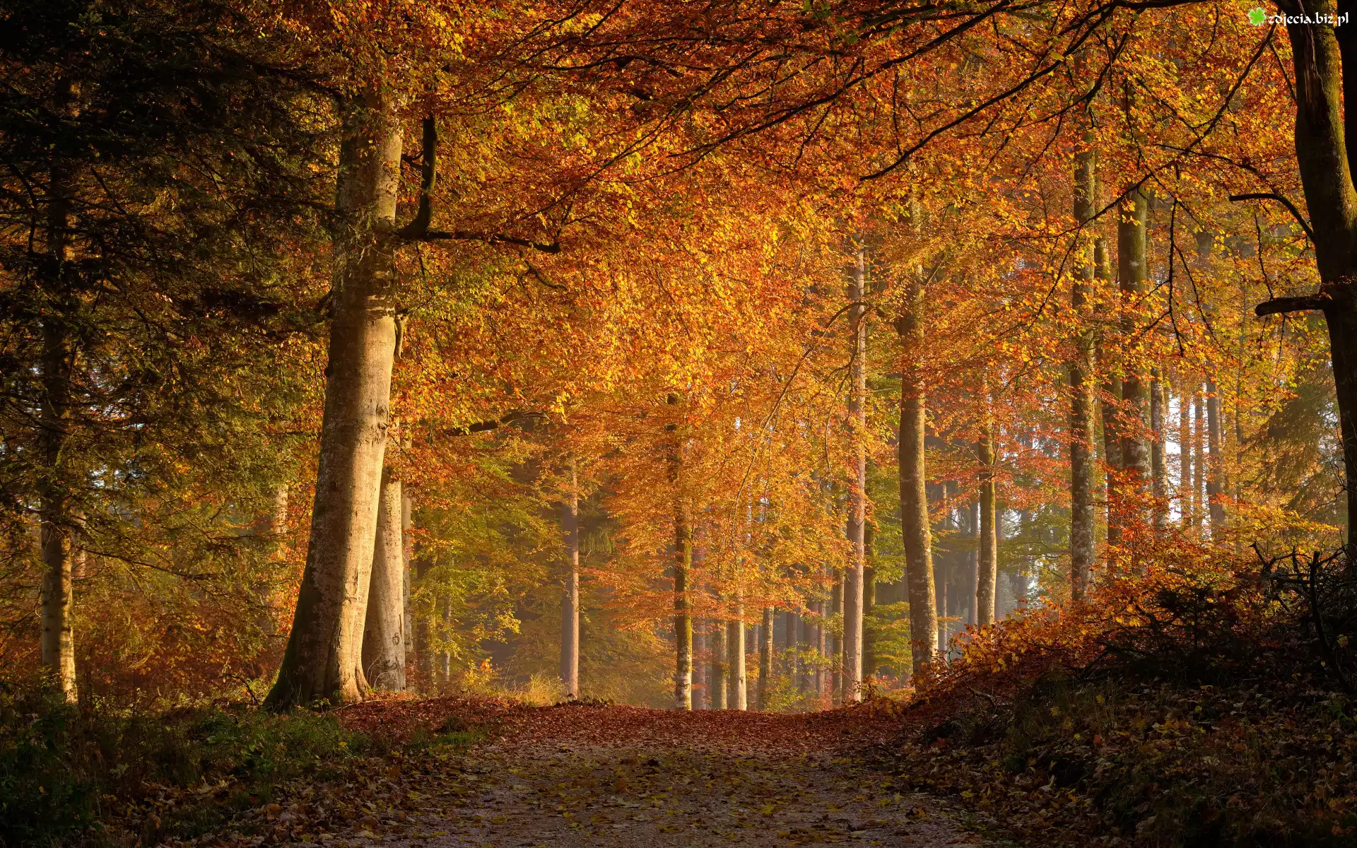 Zdjęcie Jesień, Las, Drzewa, Ścieżka, Opadłe, Liście