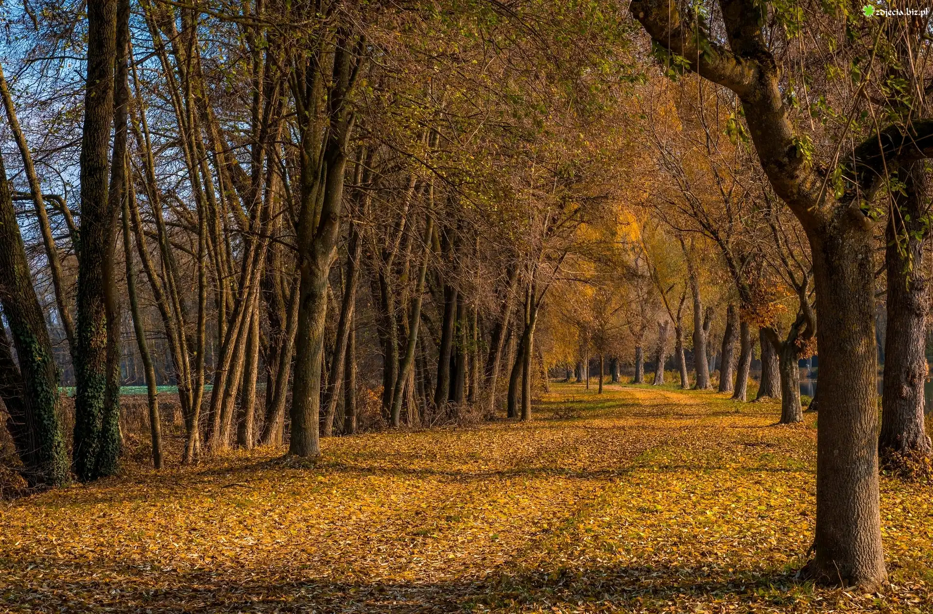 Zdjęcie Jesień, Droga, Drzewa, Opadłe, Liście