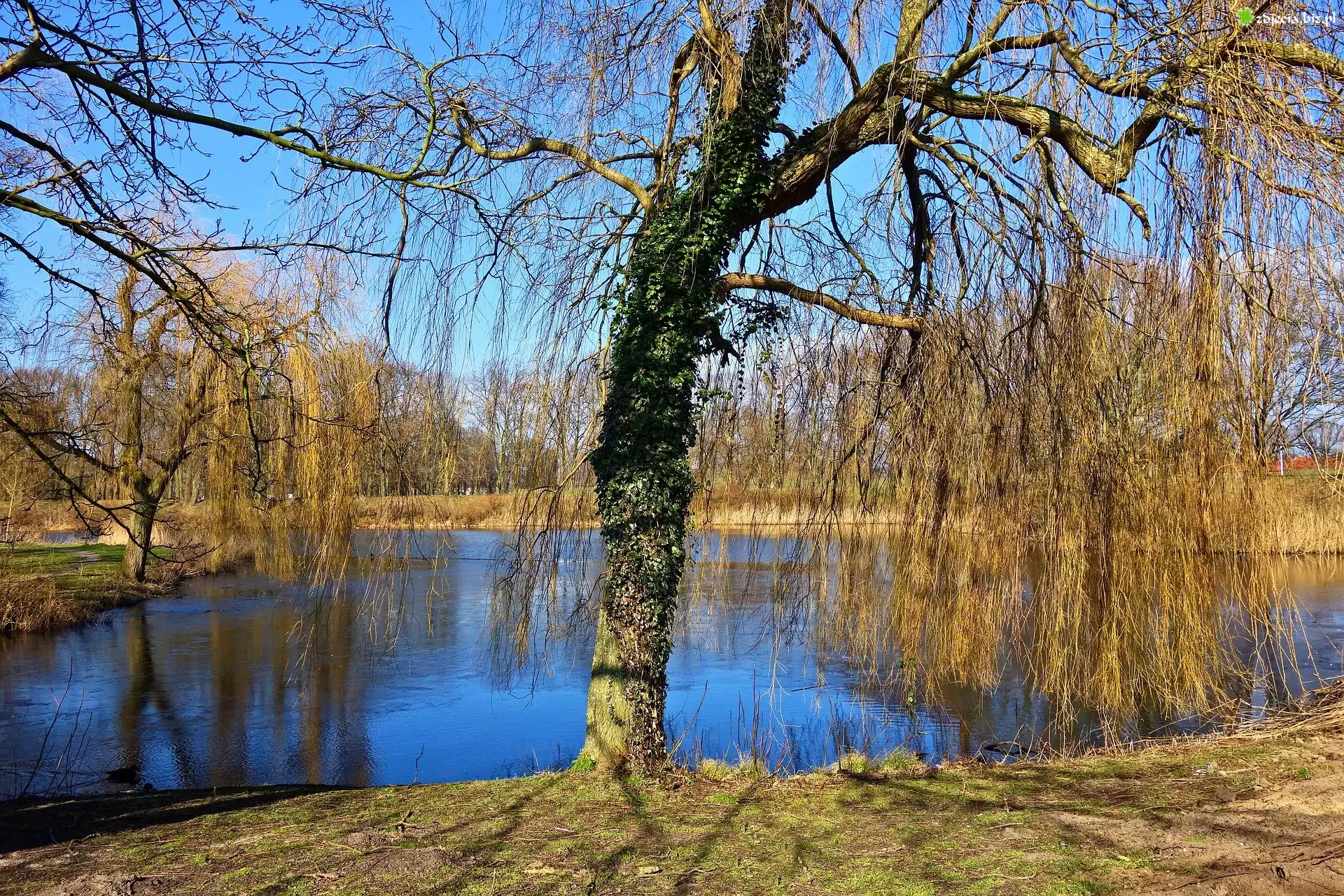 Zdjęcie, Jesień, Staw, Wierzby płaczące, Park