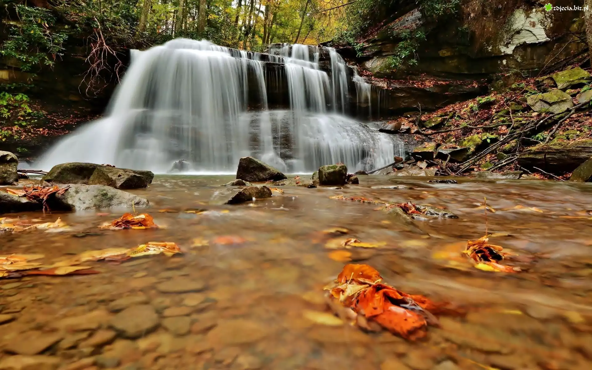 Zdjęcie Jesień, Wodospad, Liście, Potok, Drzewa