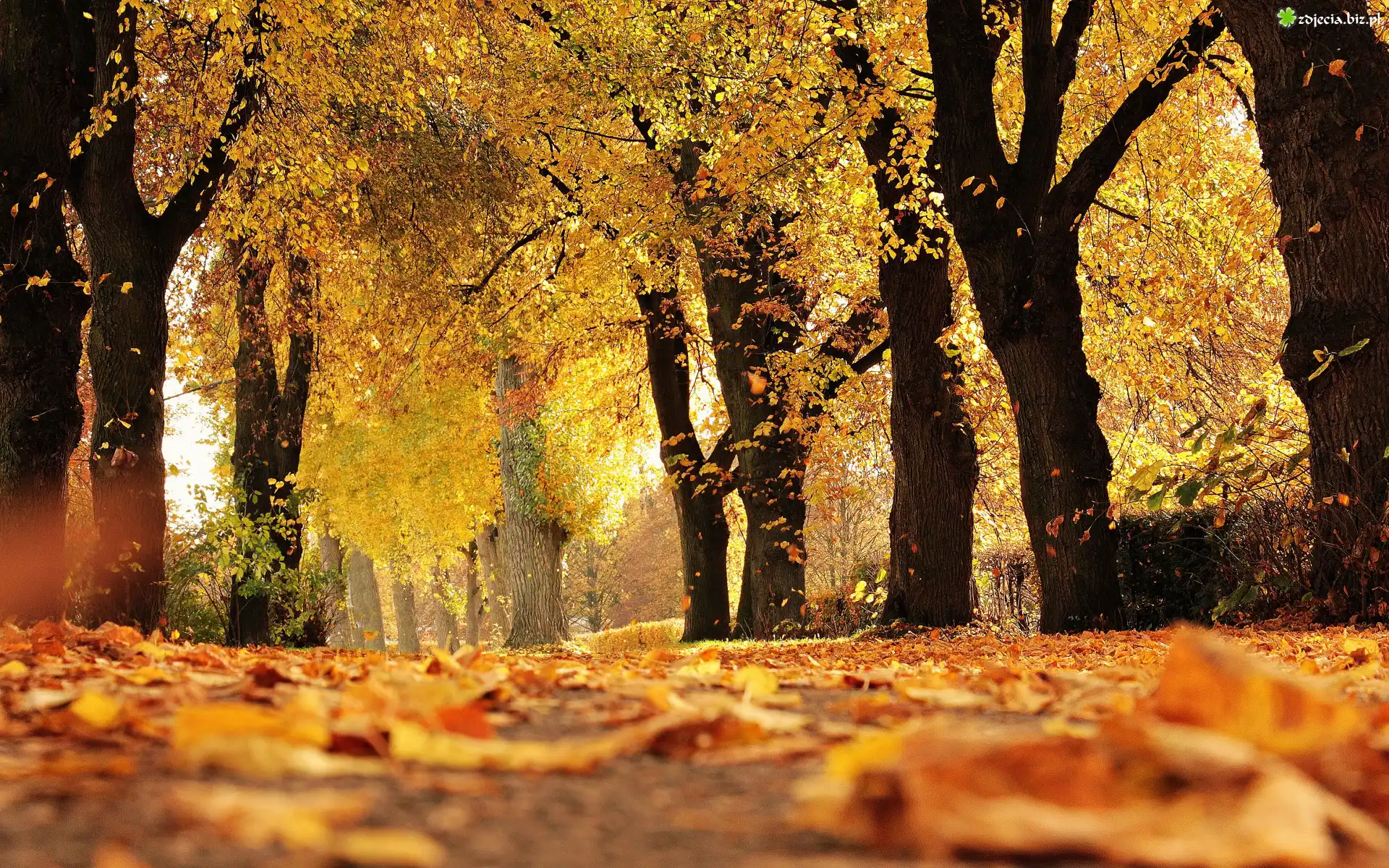 Zdjęcie Jesień, Drzewa, Park, Alejka, Pożółkłe, Liście