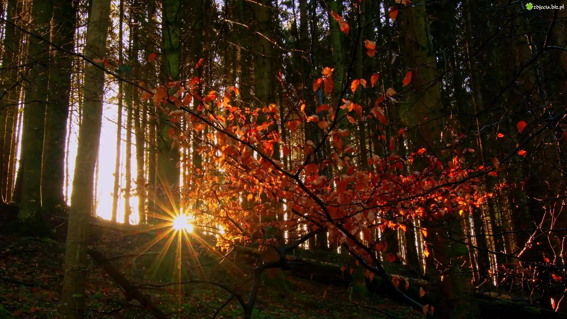 Zdjęcie Jesień, Las, Promienie słońca