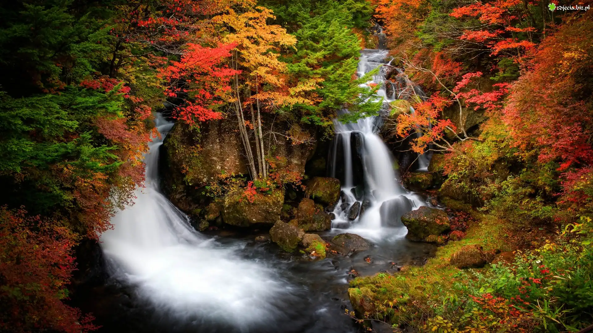 Zdjęcie Jesień, Las, Wodospad, Ryuzu, Japonia