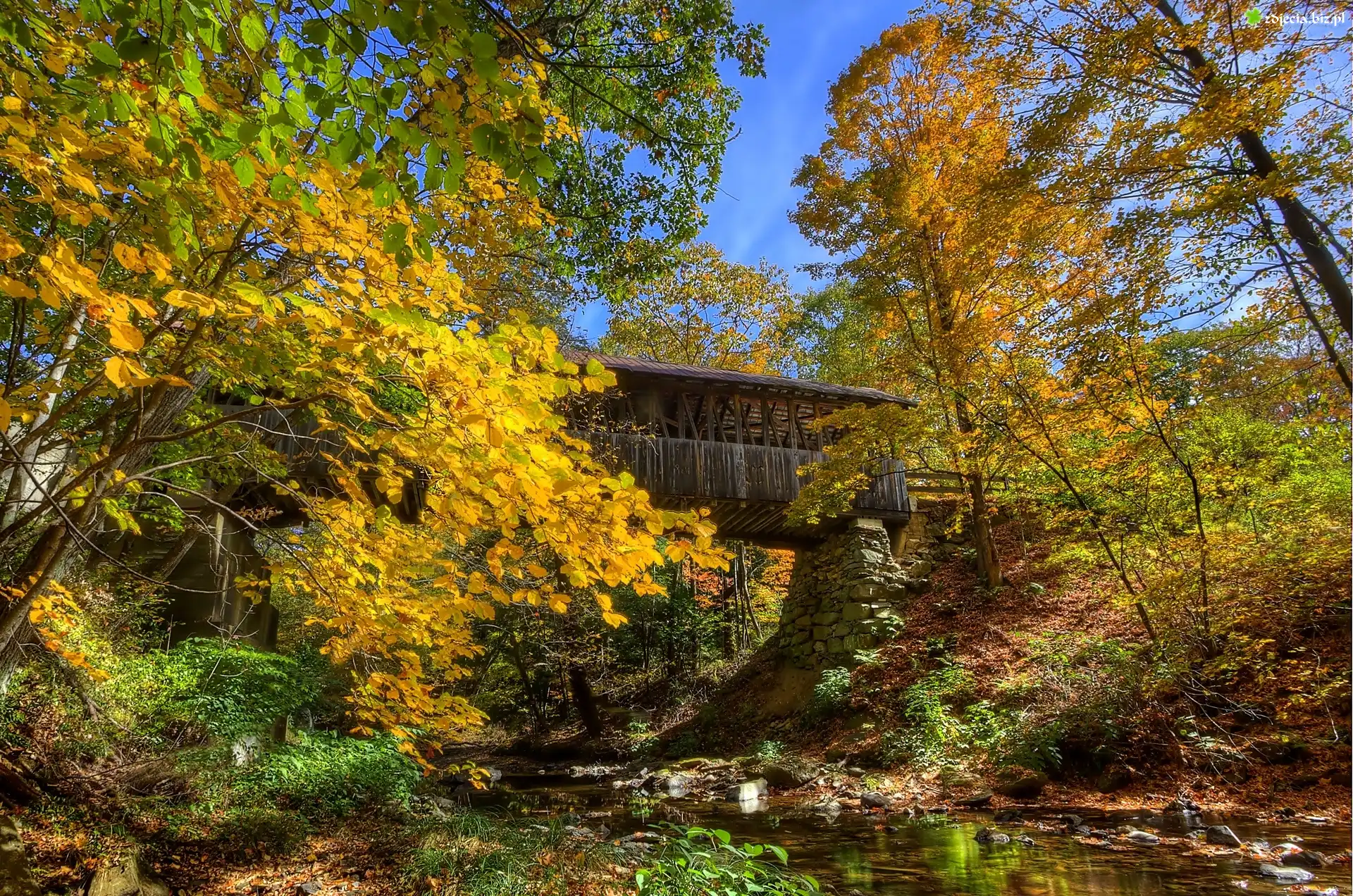 Zdjęcie, Jesień, Drzewa, Rzeczka, Most
