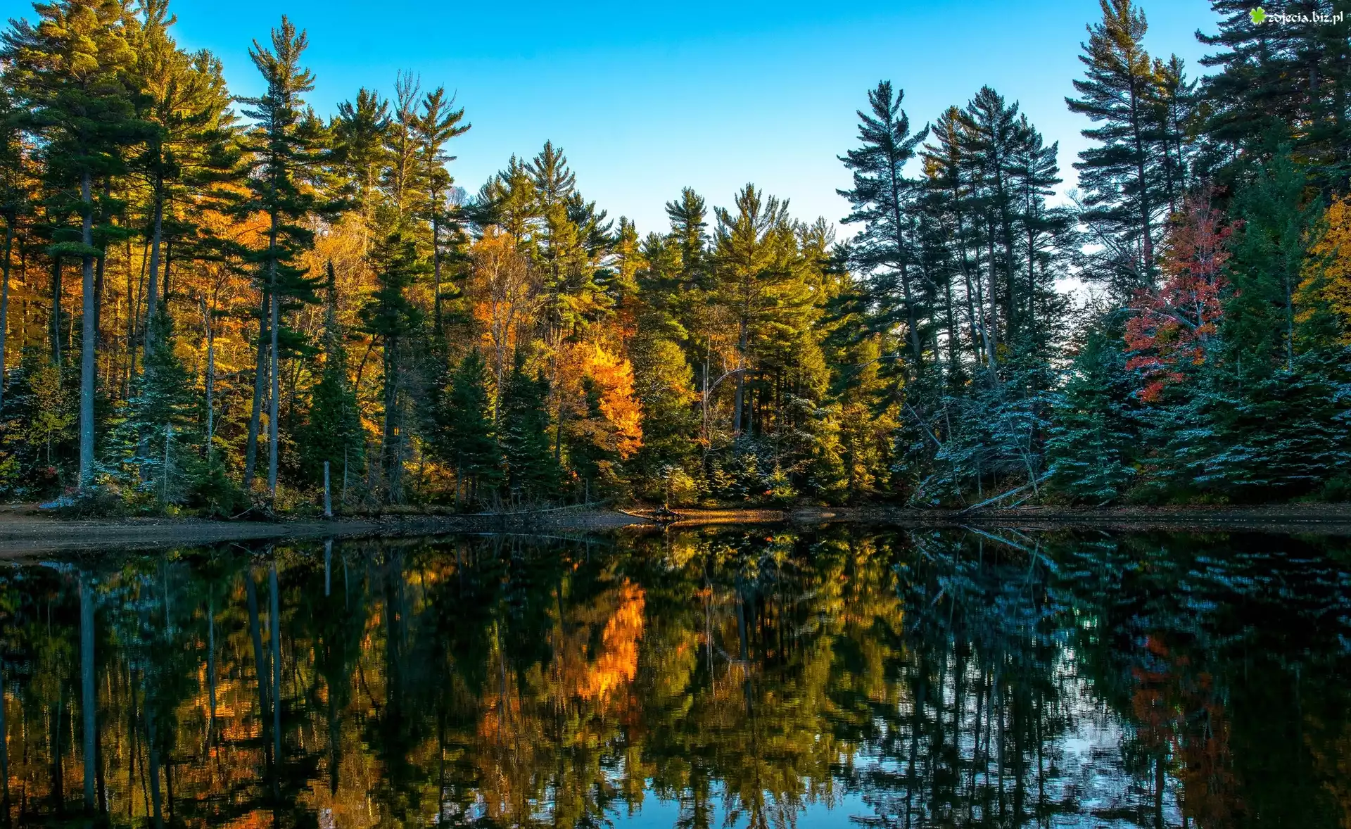 Zdjęcie, Jesień, Drzewa, Las, Rzeka, Odbicie