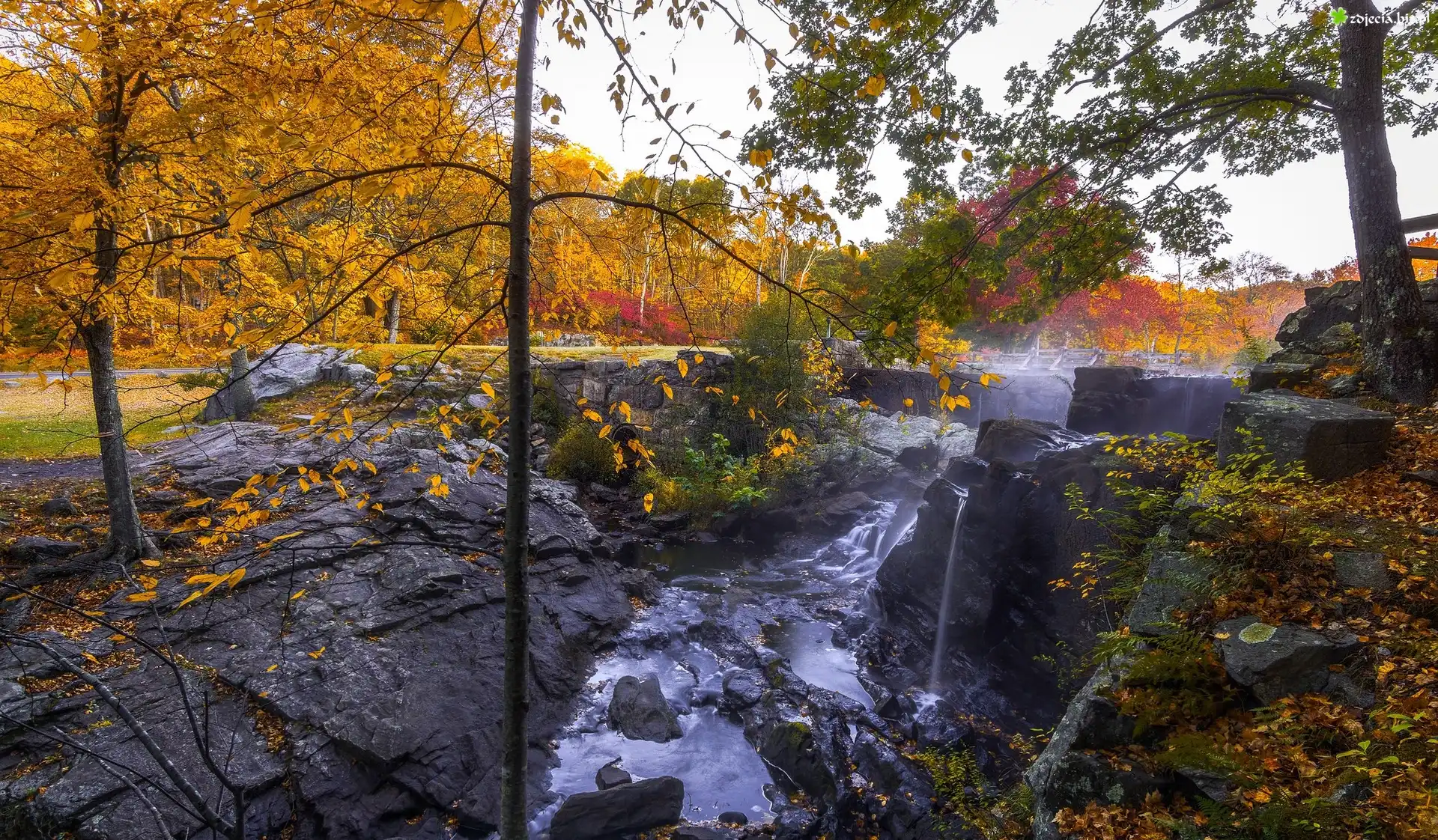 Zdjęcie Jesień, Drzewa, Skały, Rzeka