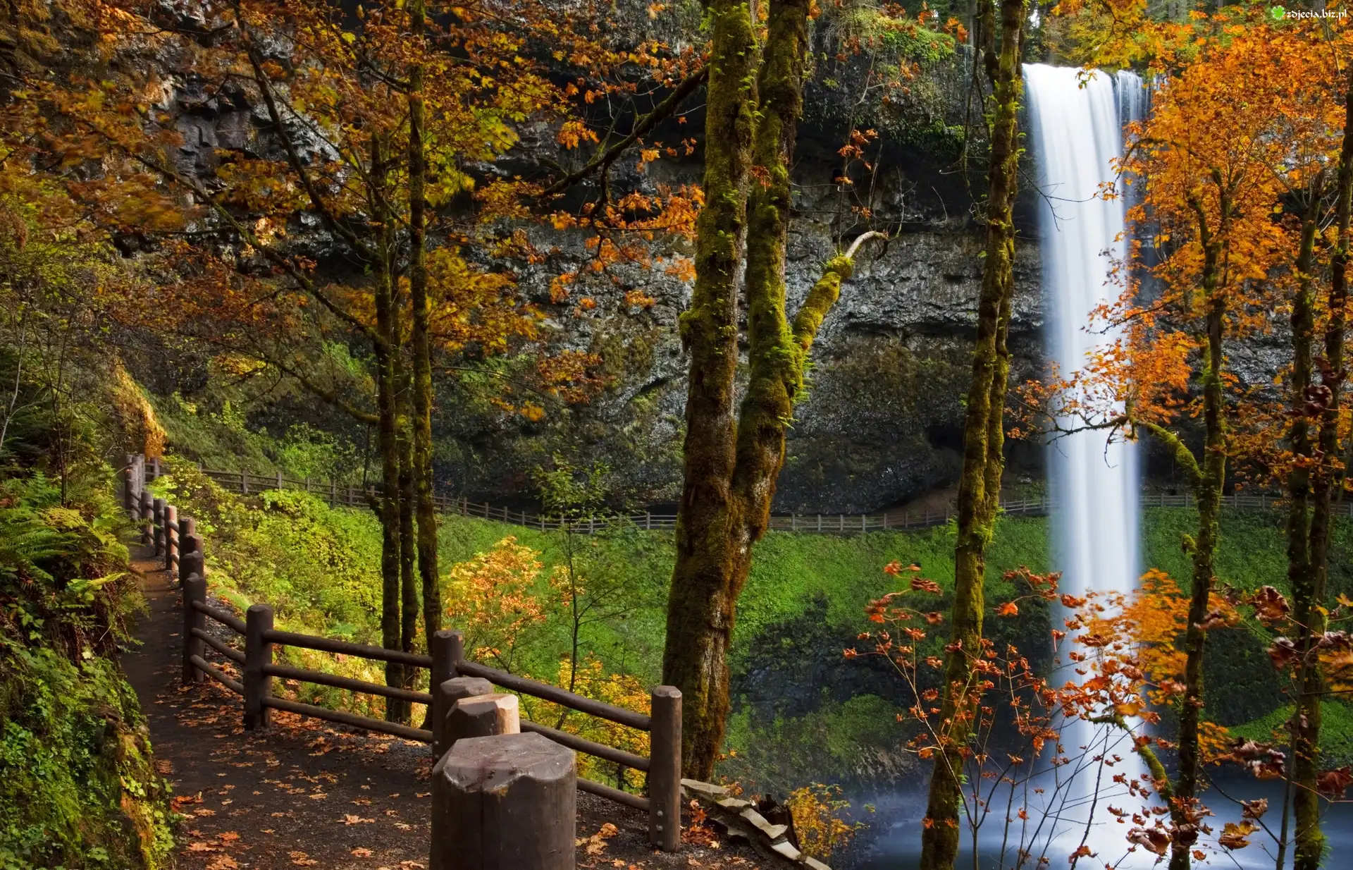 Wodospad Jesień, Wieś Jesień, Rzeka, Łódka Kajakarstwo, extremalne, Wodospad Jesień, Staw, Odbicie, Drzew Wodospad Jezioro, Mgła, Las, Jeleń Wodospad, Skały Skały, Drzewa, Jezioro Jesień, Las Wodospad, Woda, Tęcza Piękny Wodospad Drzewa, Zielone, Listki, Mgła Las, Drzewa, Zarośnięta, Dróżka