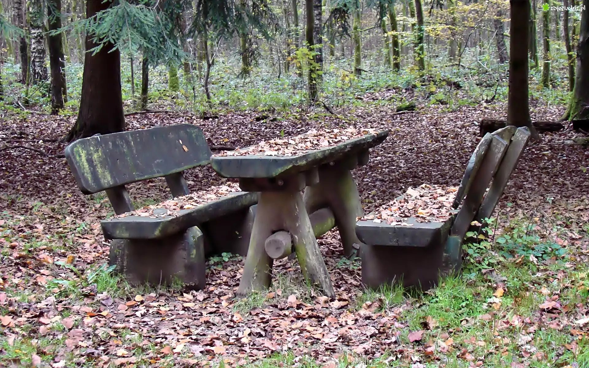 Zdjęcie Jesień, Park, Ławki, Stół, Liście