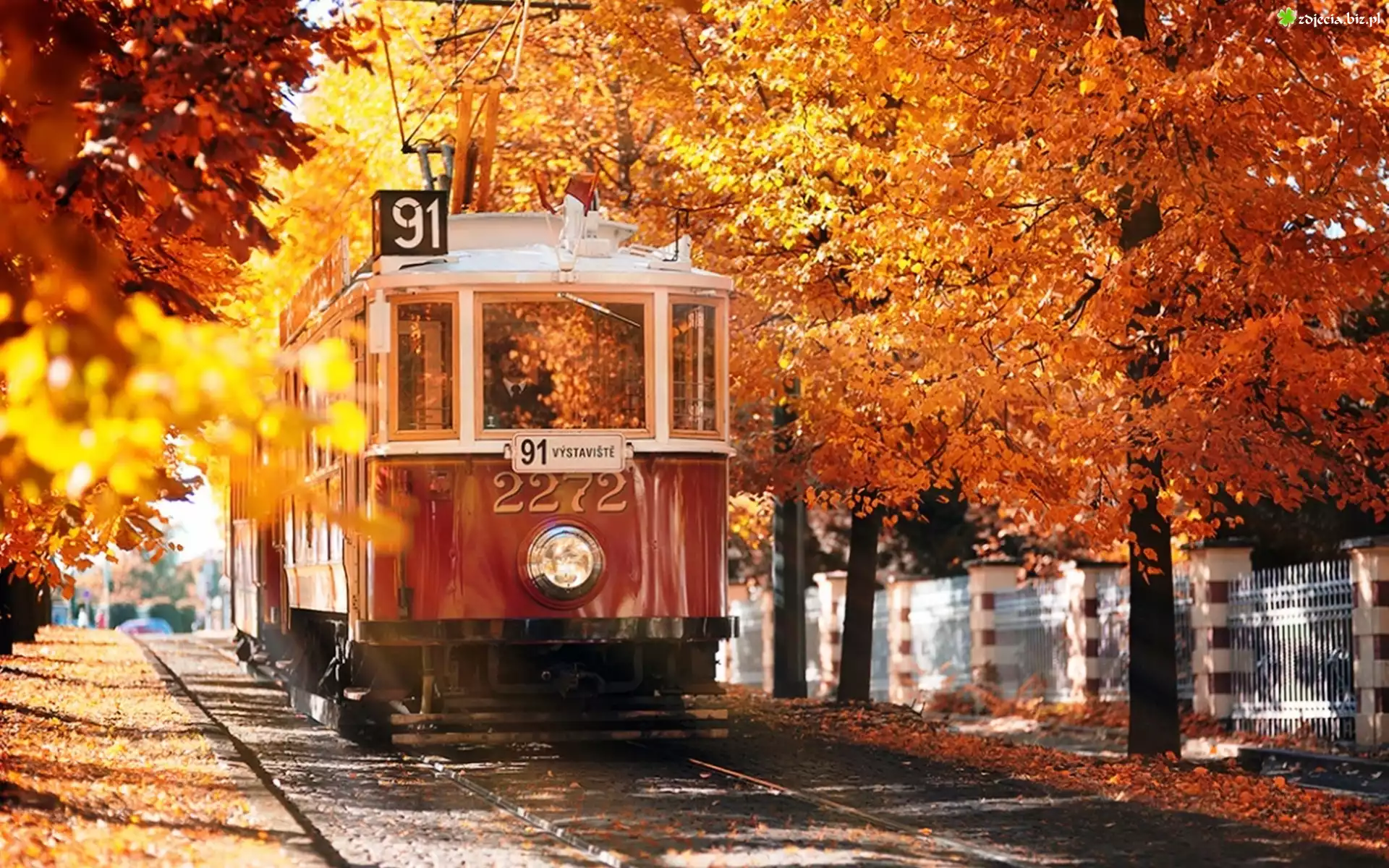 Zdjęcie Tramwaj, Jesień, Drzewa