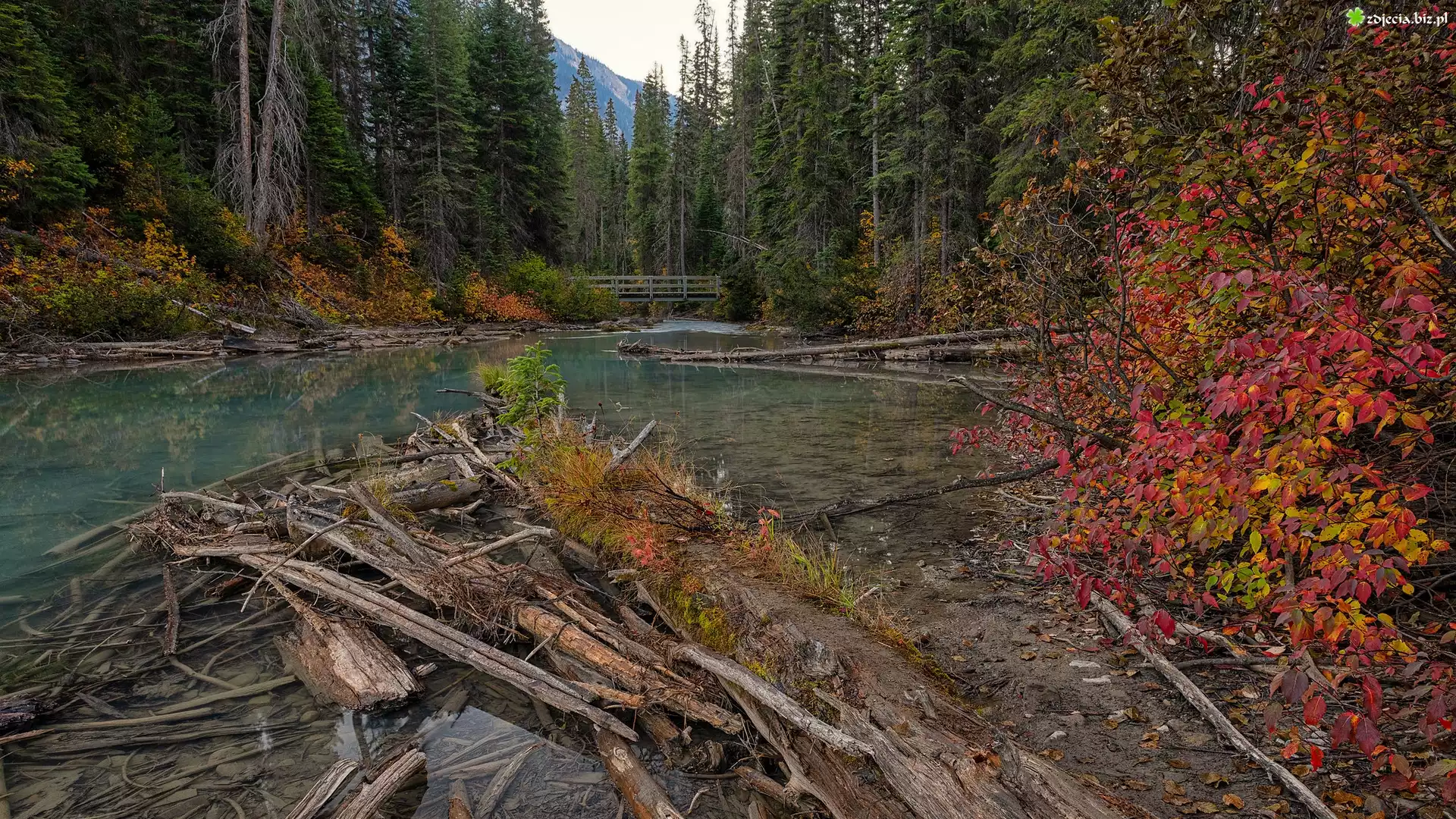 Zdjęcie Jesień, Góry, Las, Mostek, Jezioro Szmaragdowe, Park Narodowy Yoho Rzeka