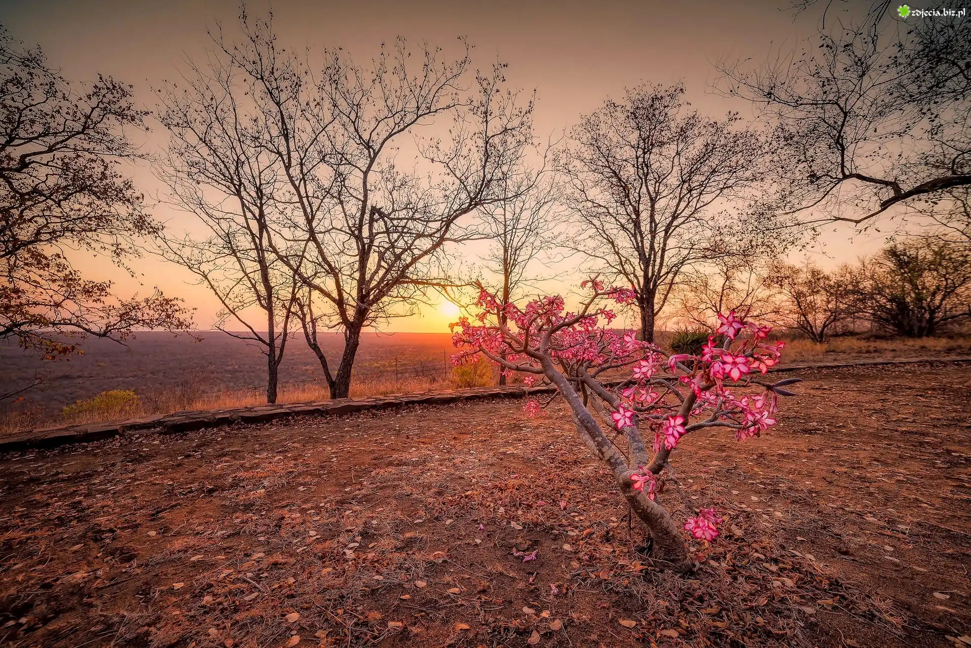 Zdjęcie Jesień, Drzewa, Liście, Zachód, Słońca