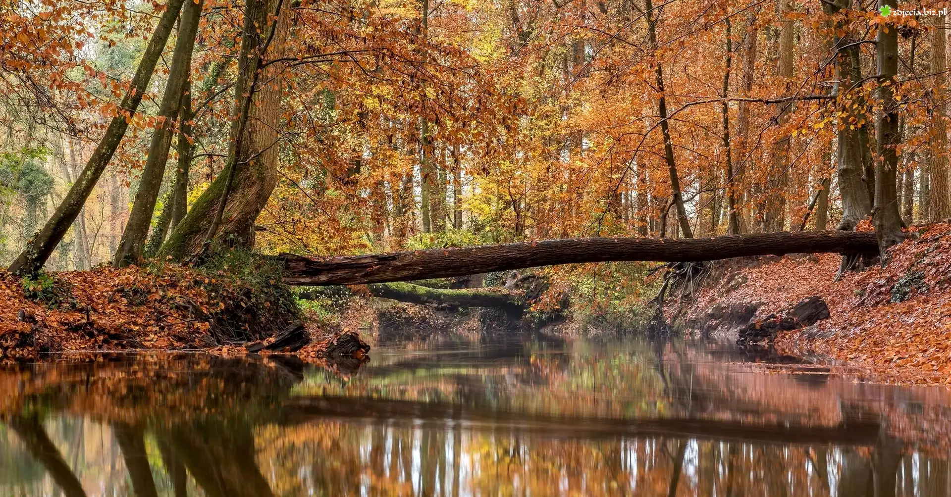 Zdjęcie Jesień, Las, Rzeka, Złamane, Drzewo