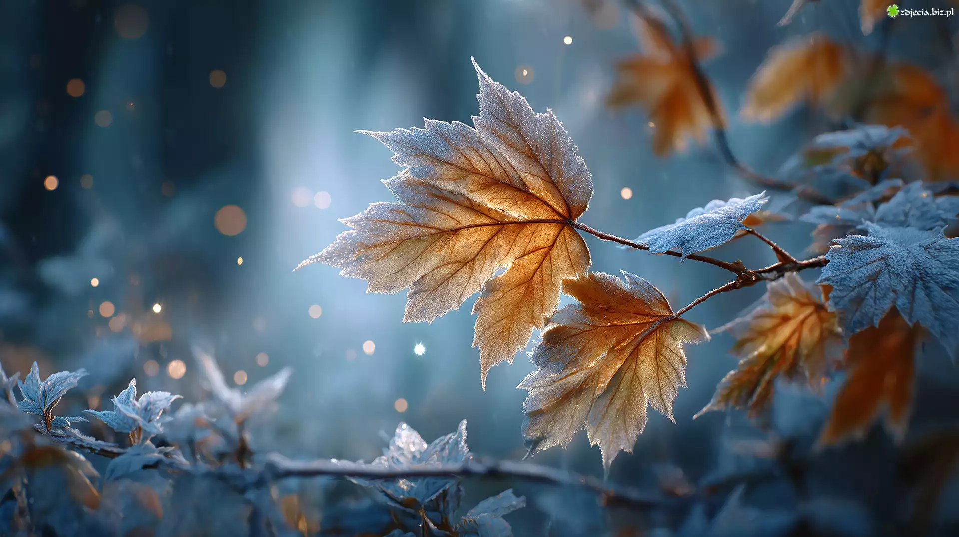 Zdjęcie, Oszronione, Jesienne, Liście, Grafika AI