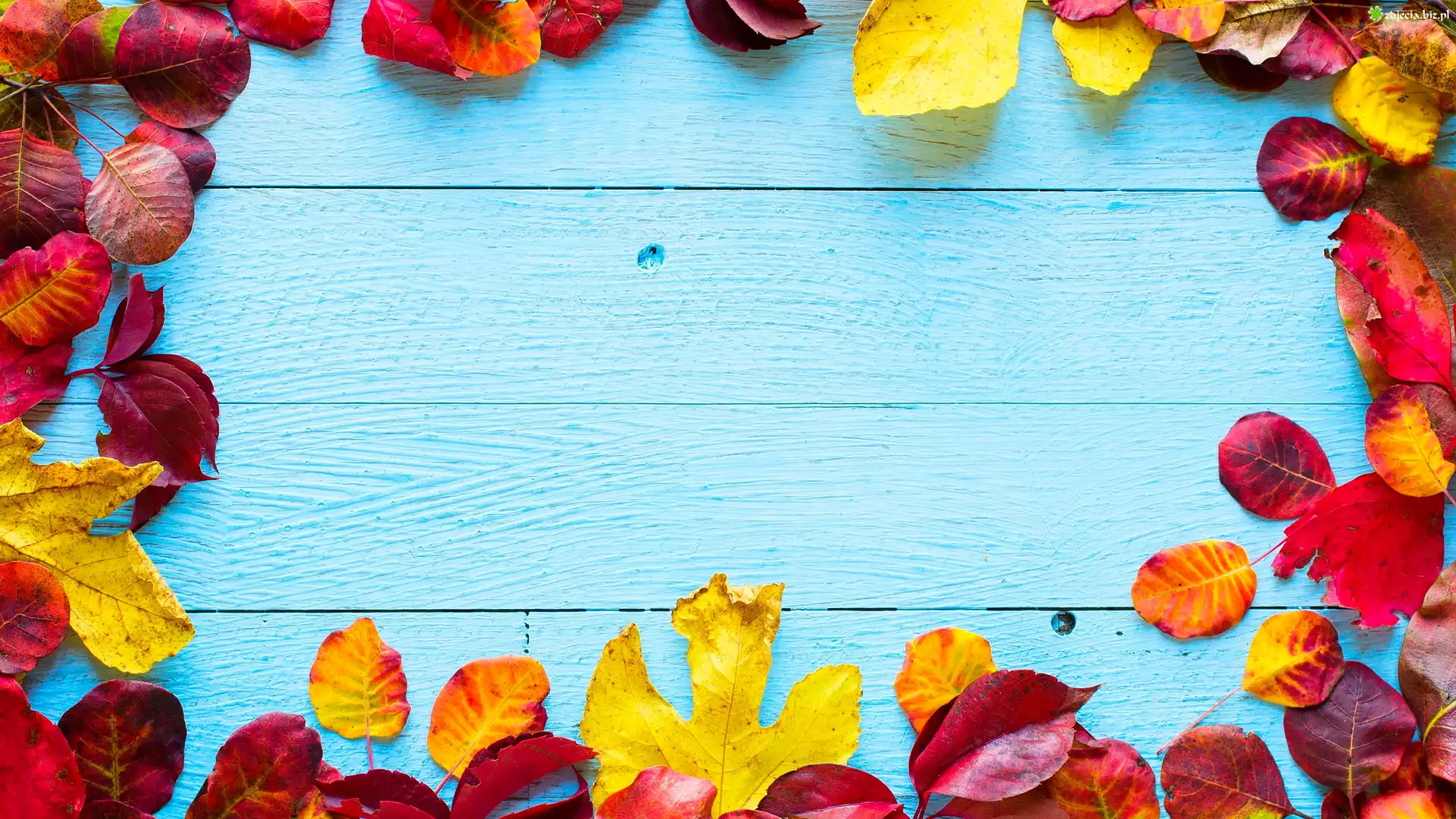 Zdjęcie Jesienne, Liście, Niebieskie, Deski