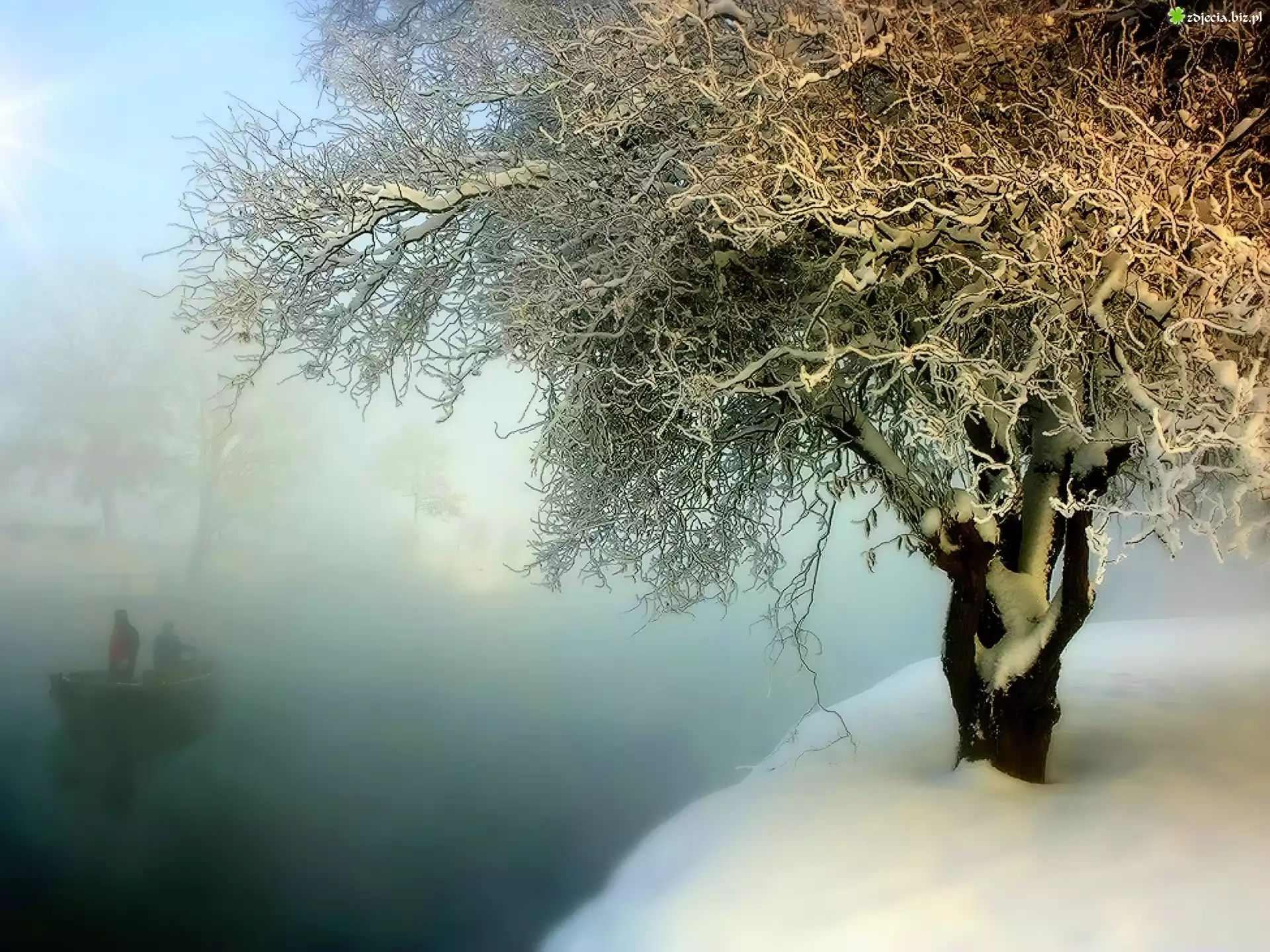 Zdjęcie Jeziora, Mgła, Drzewo, Zima