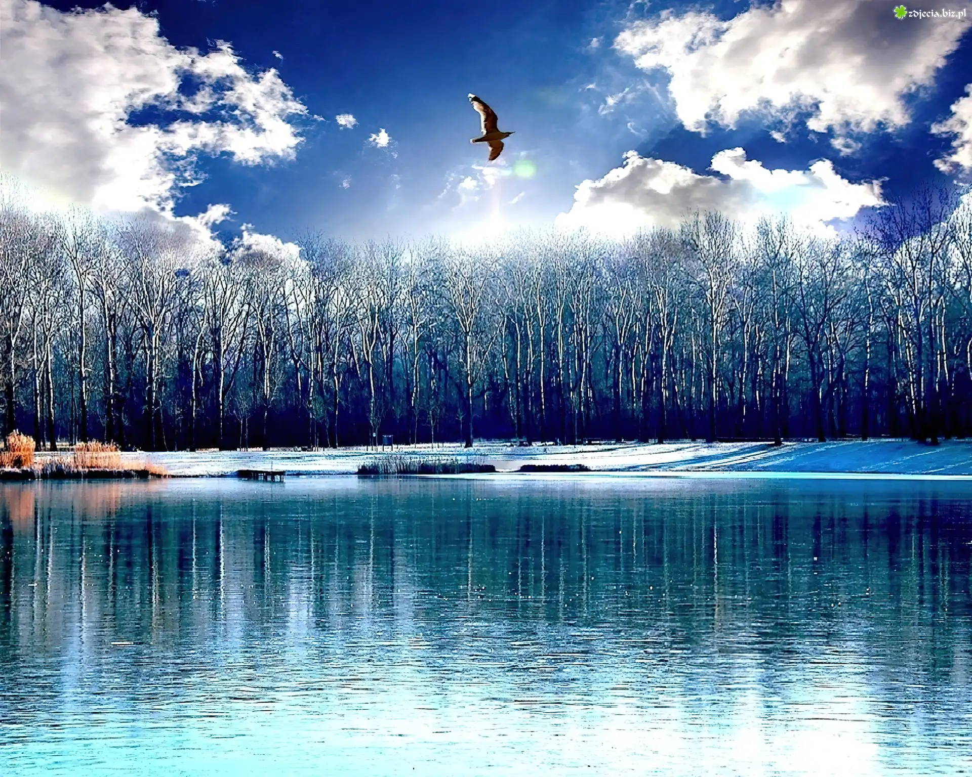 Zdjęcie Jeziora, Drzewa, Parki, Zima