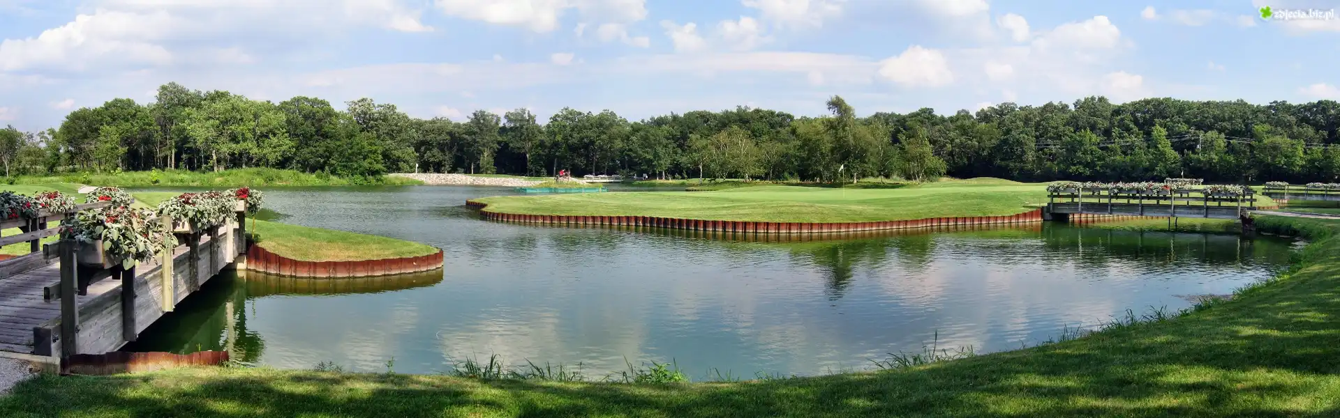 Zdjęcie, Jeziorko, Mosty, Drzewa, Park