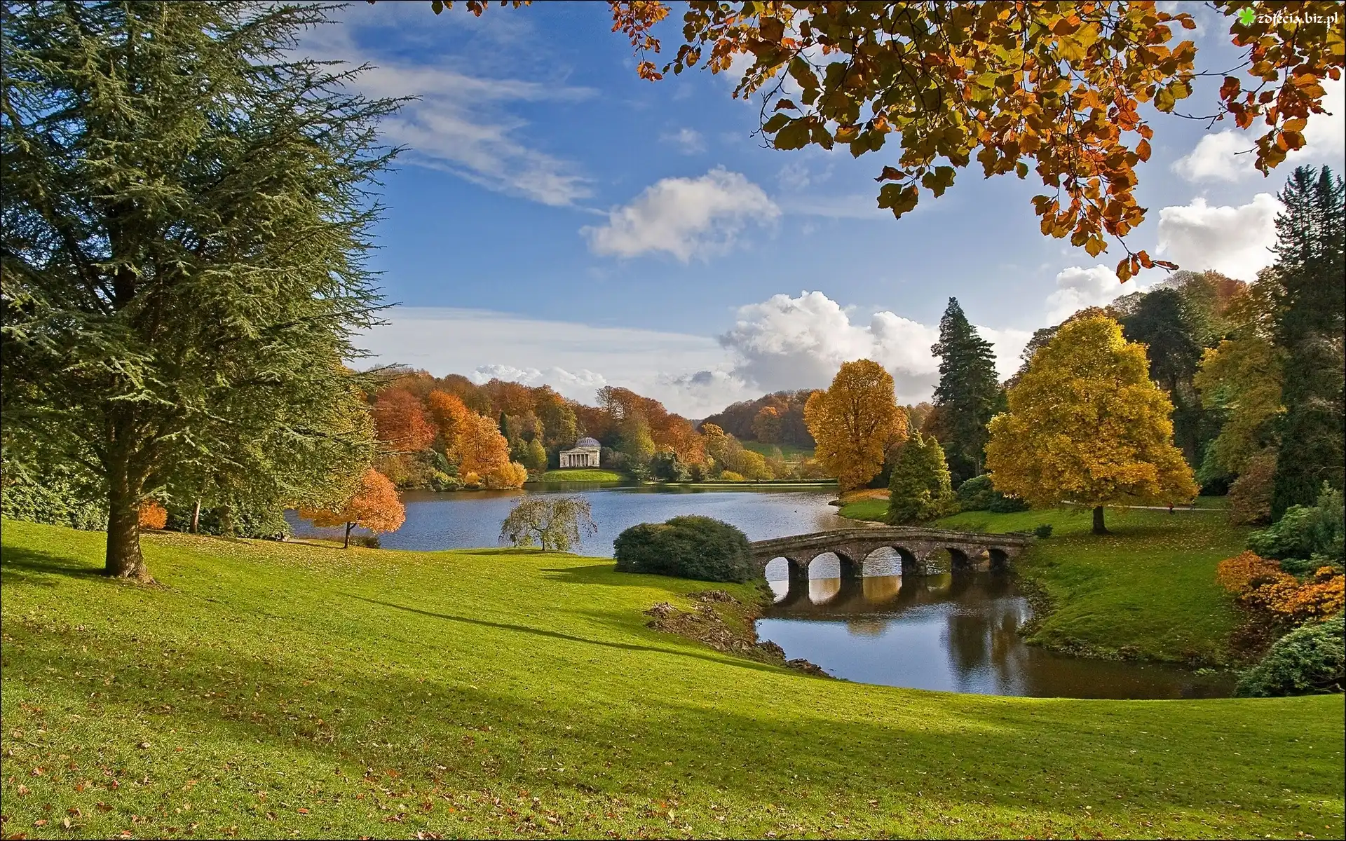 Zdjęcie, Jeziorko, Mostek, Ogród, Stourhead, Anglia