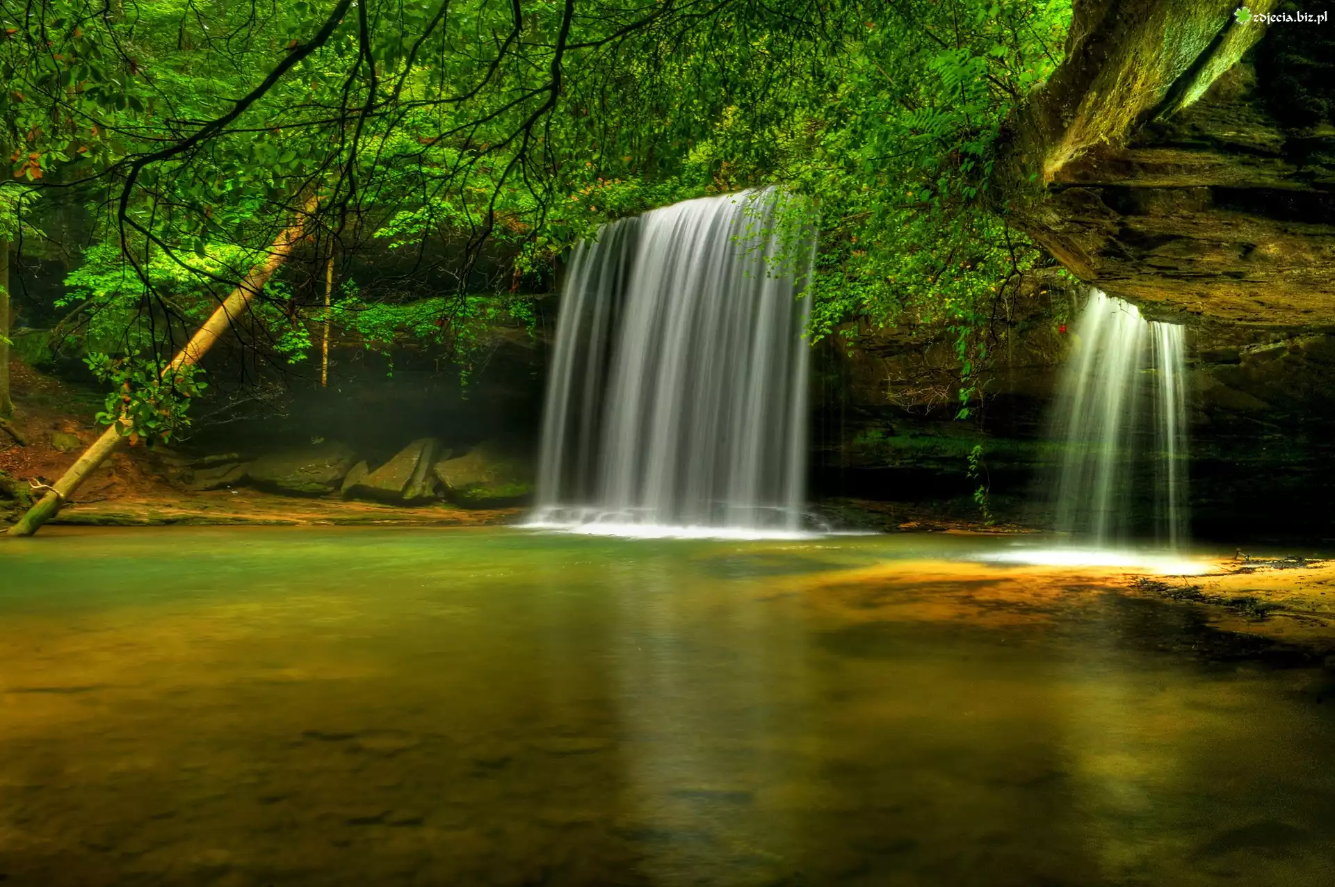 Zdjęcie Wodospad, Jeziorko, Gałęzie