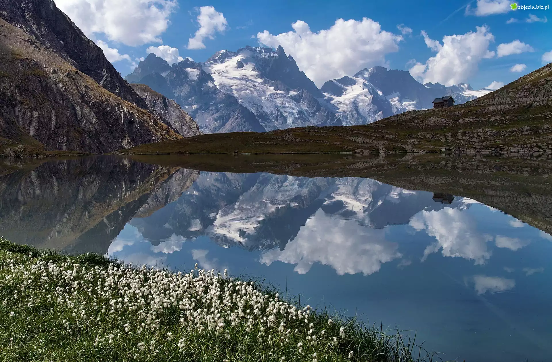 Zdjęcie, Jezioro, Góry, Odbicie, Białe, Roślinki