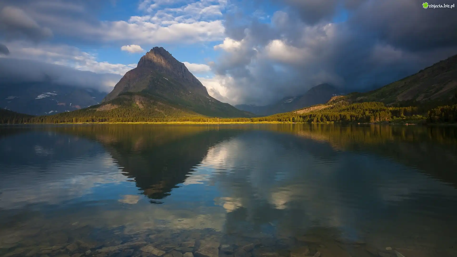 Zdjęcie Jezioro, Góry, Góra, Chmury, Odbicie