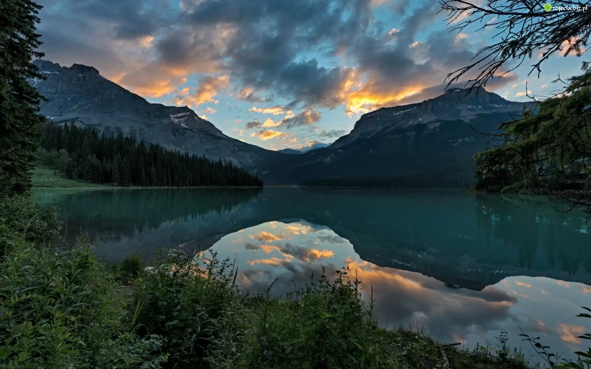 Zdjęcie, Jezioro, Góry, Chmury, Odbicie