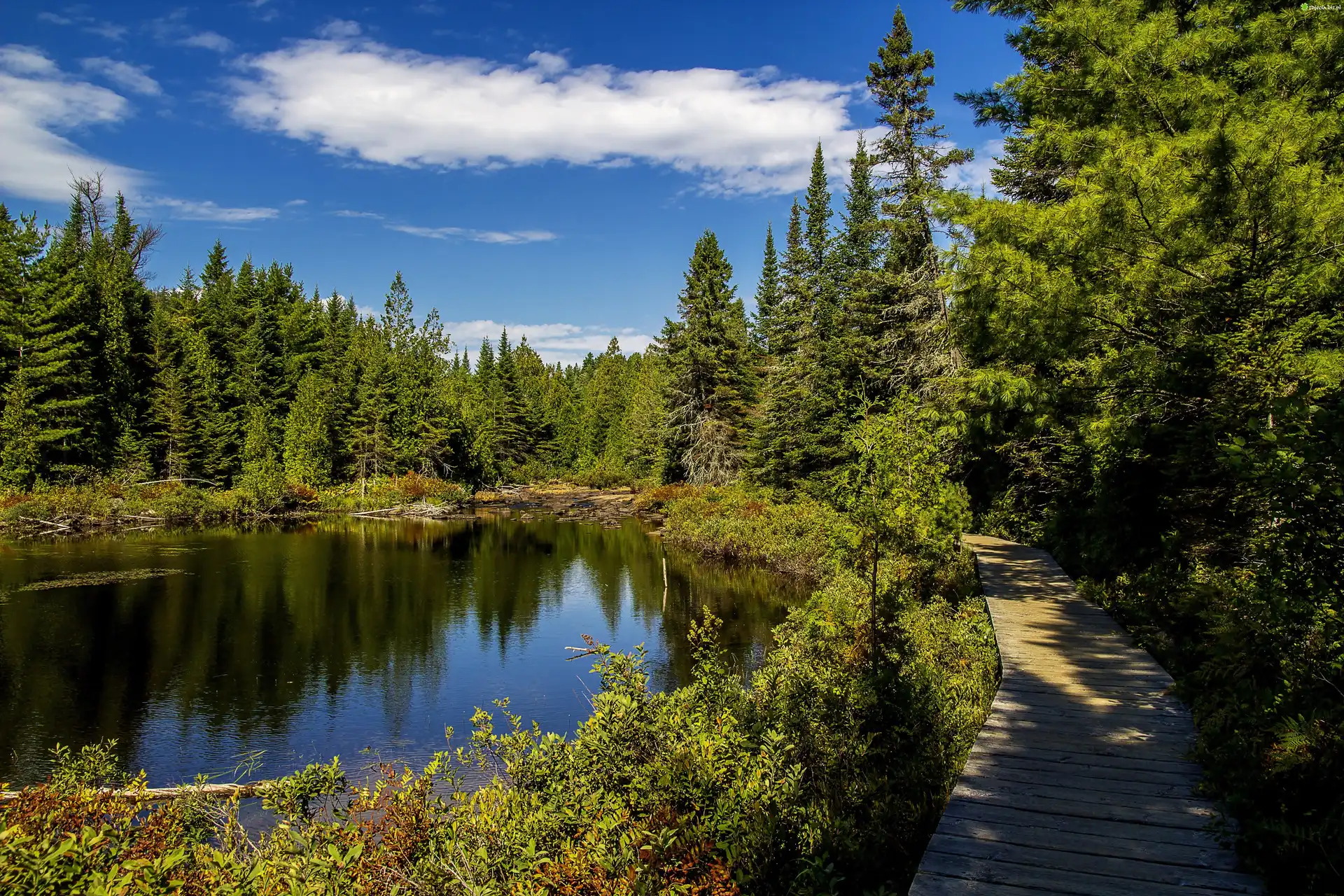 Zdjęcie, Jezioro, Las, Chmury, Ścieżka