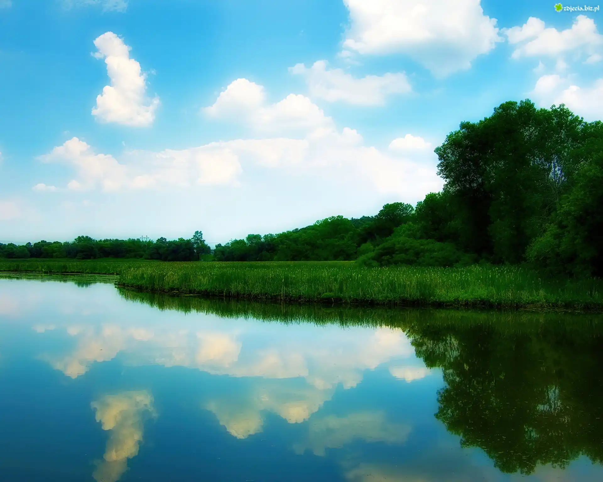 Zdjęcie, Chmury, Jezioro, Odbicie
