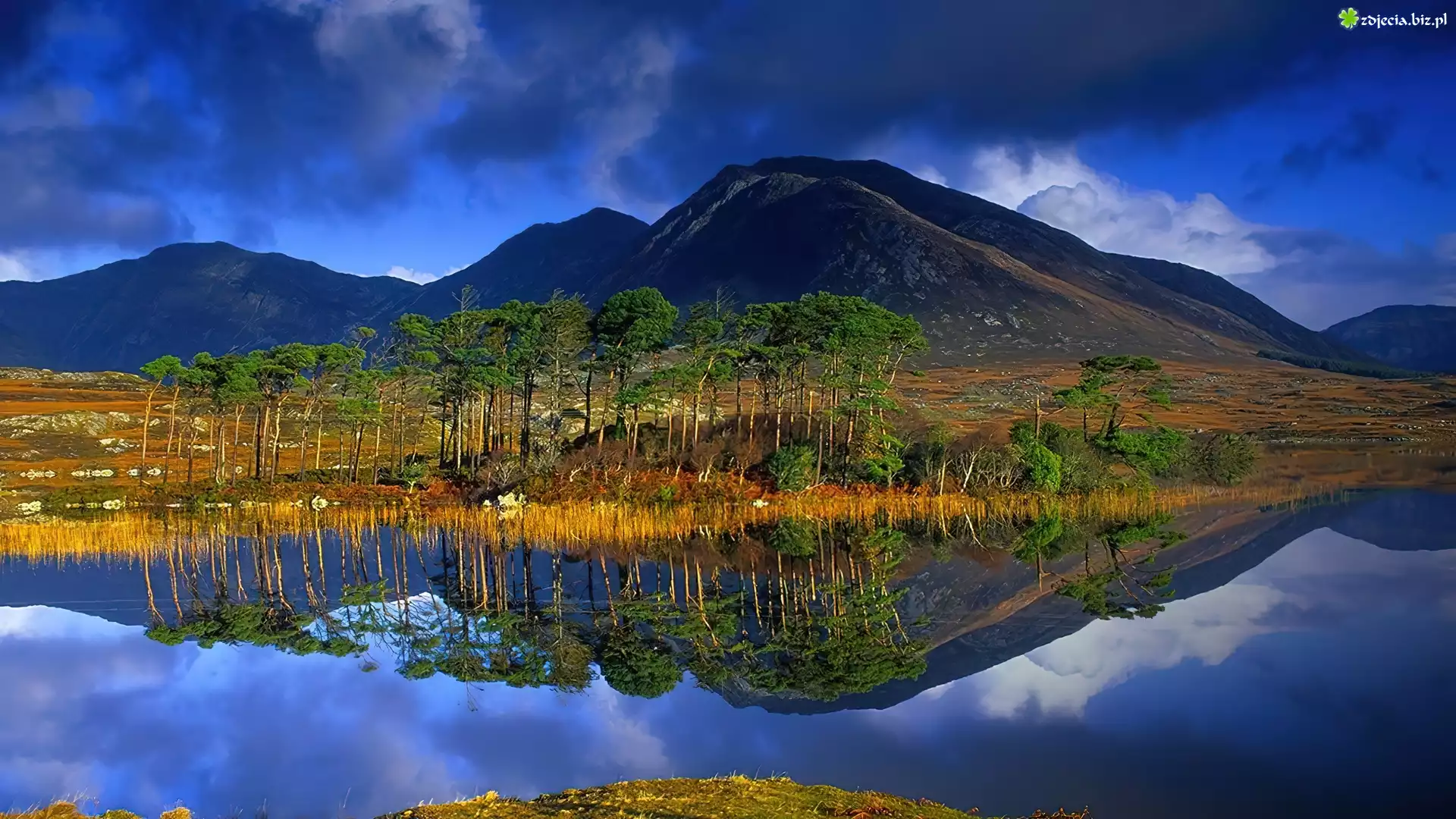 Zdjęcie Jezioro, Góra, Drzewa, Odbicie