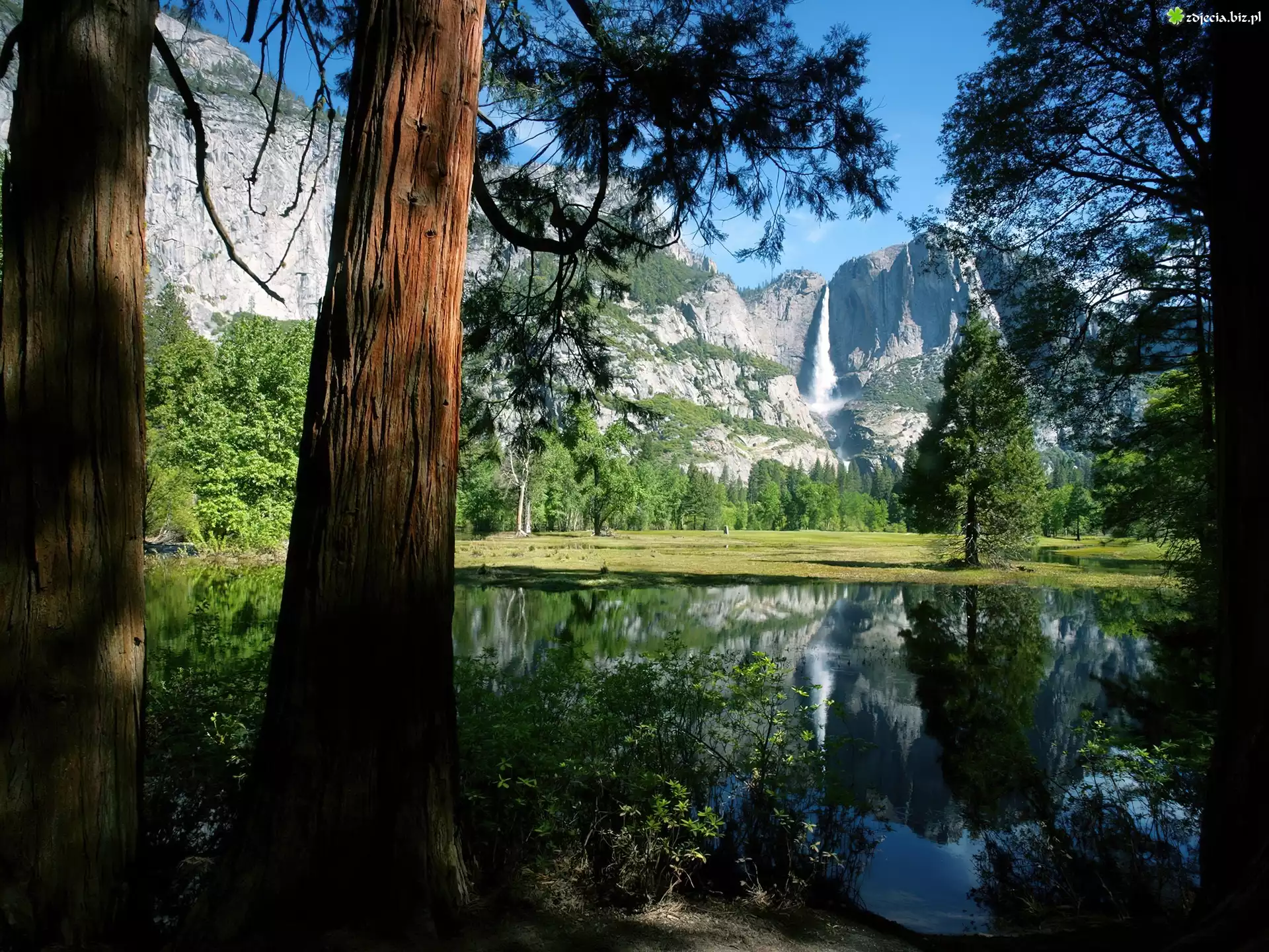 Zdjęcie Jezioro, Odbicie, Drzewa, Góry