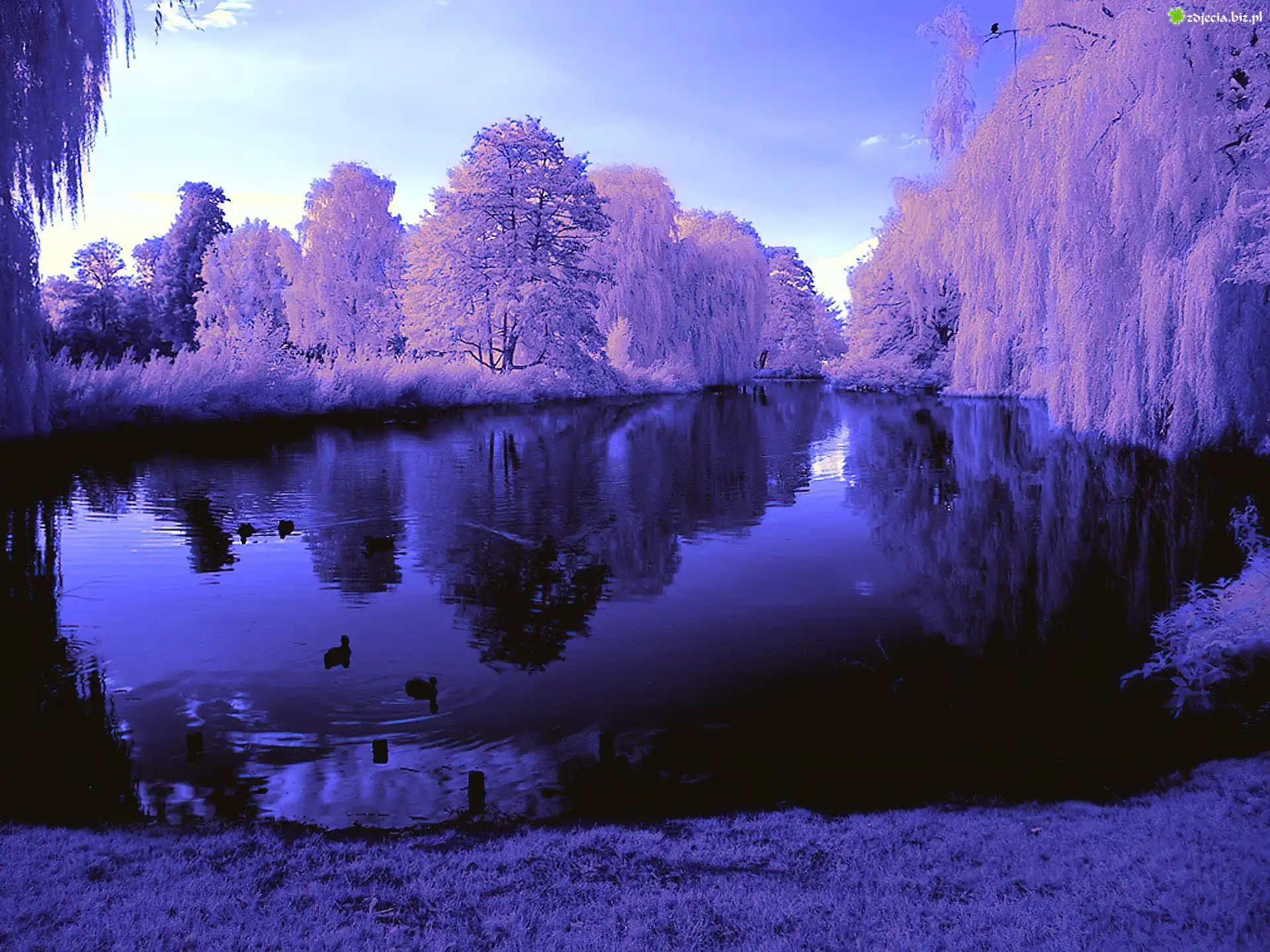 Zdjęcie Jezioro, Ośnieżone, Drzewa, Świt
