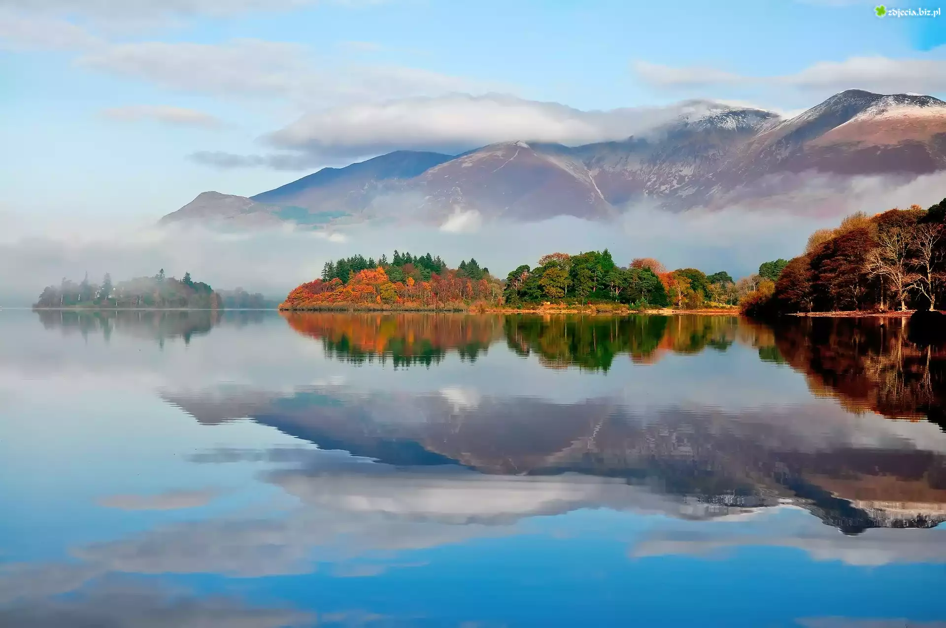 Zdjęcie Jezioro, Góry, Para, Drzewa, Odbicie