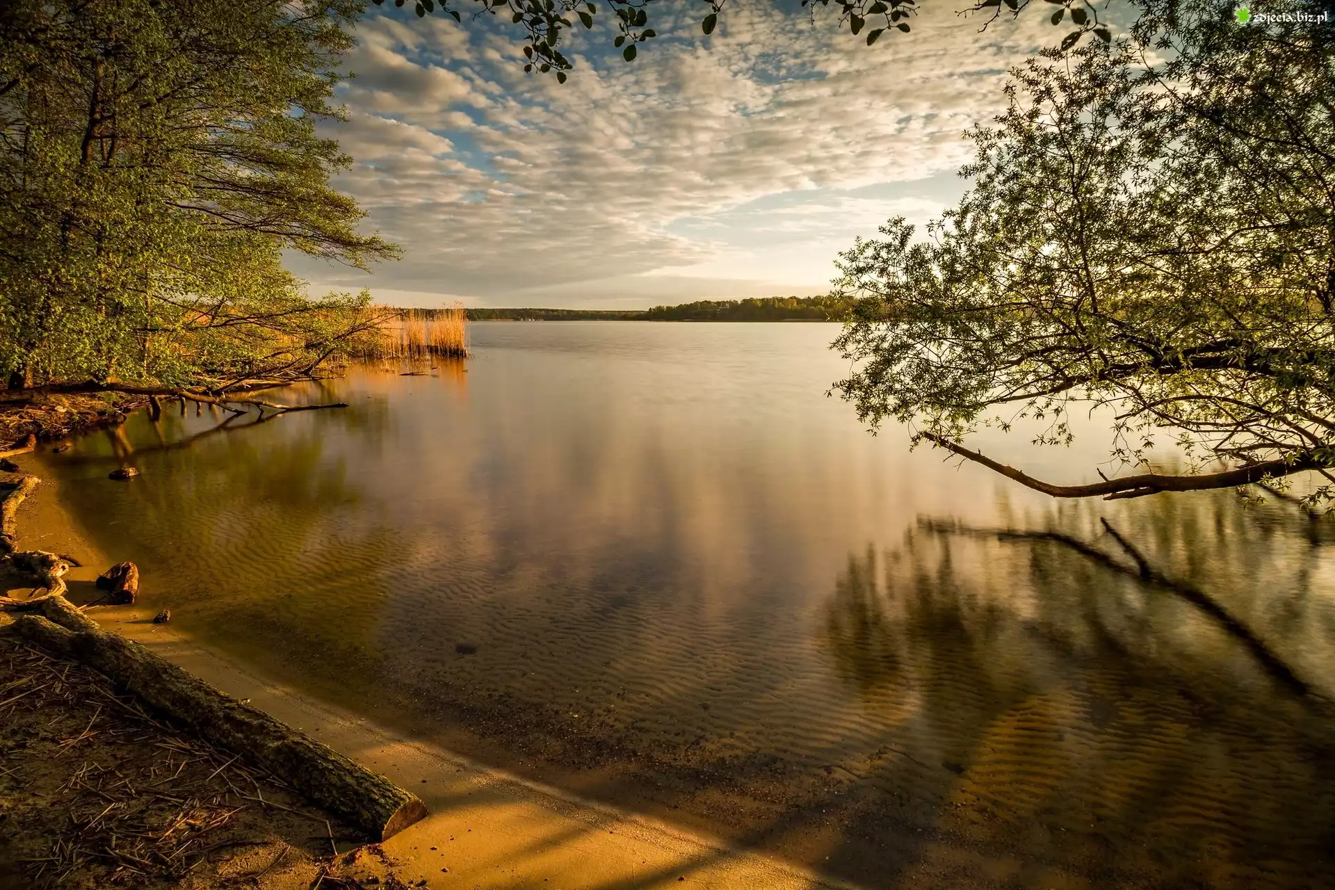 Zdjęcie Jezioro, Poranek, Drzewa, Brzeg