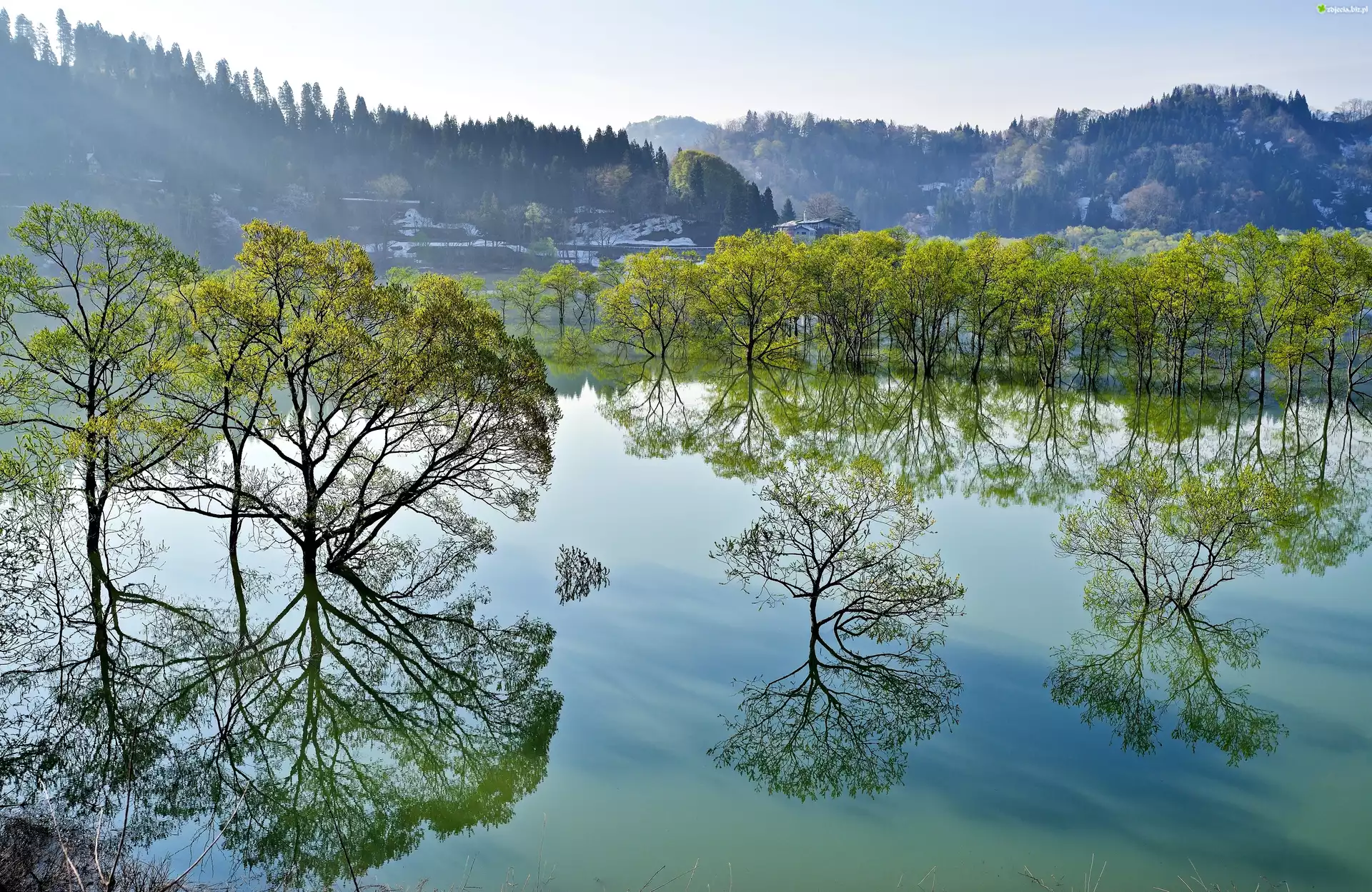 Zdjęcie, Jezioro, Wybrzeże, Drzewa, Odbicie