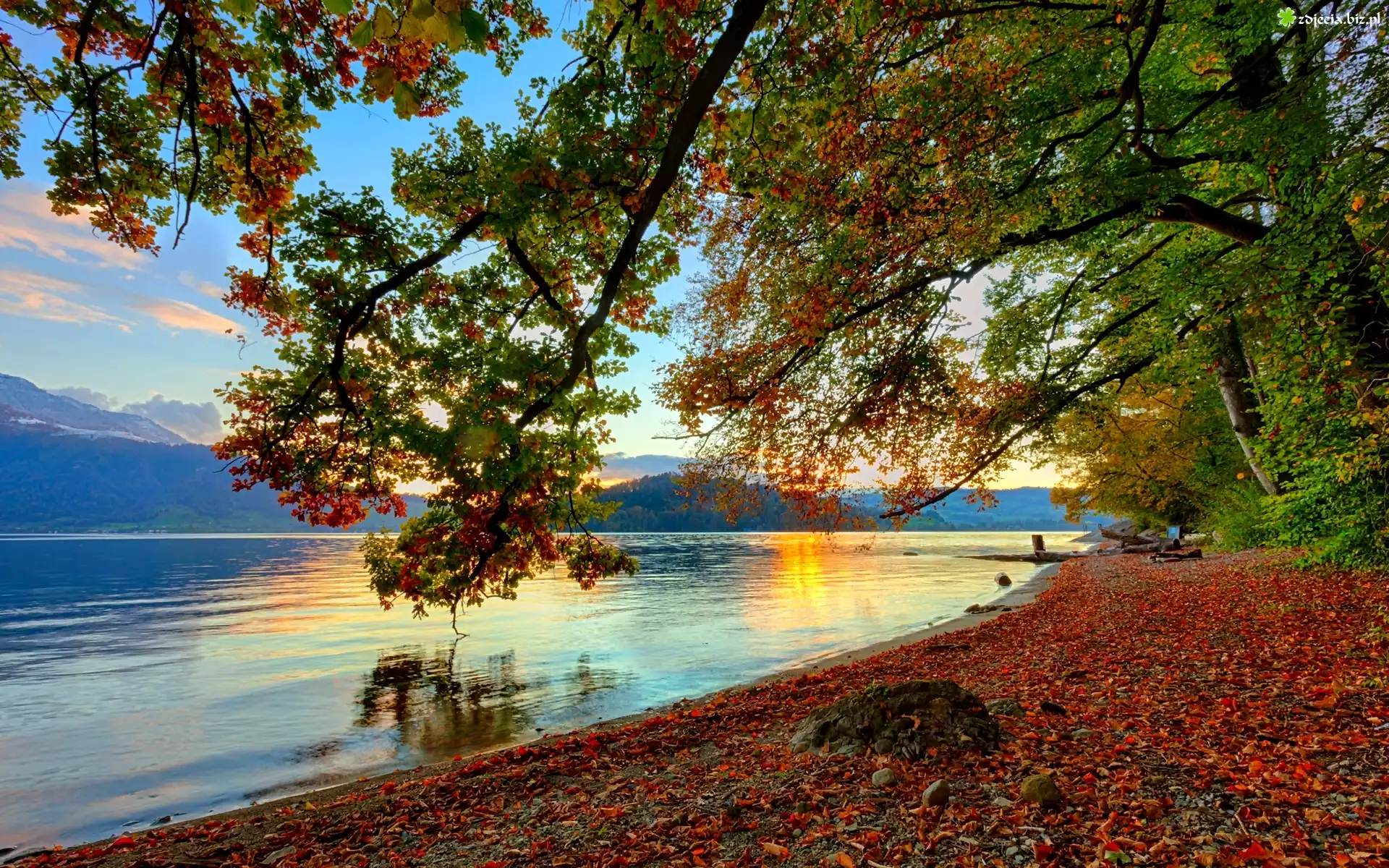 Zdjęcie Jezioro, Wschód, Słońca, Drzewo, Jesień