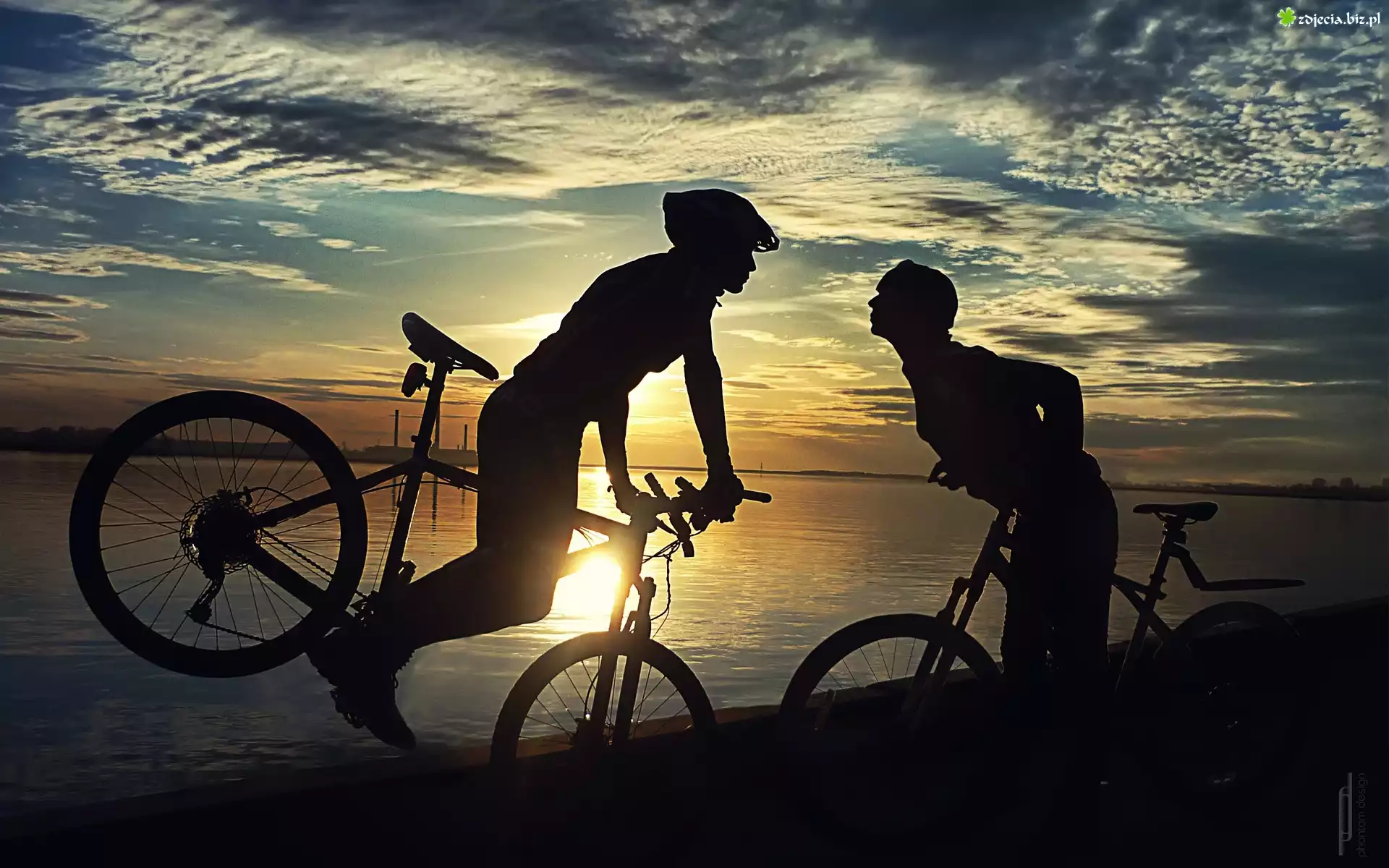 Zdjęcie Jezioro, Rowery, Dwoje, Ludzi