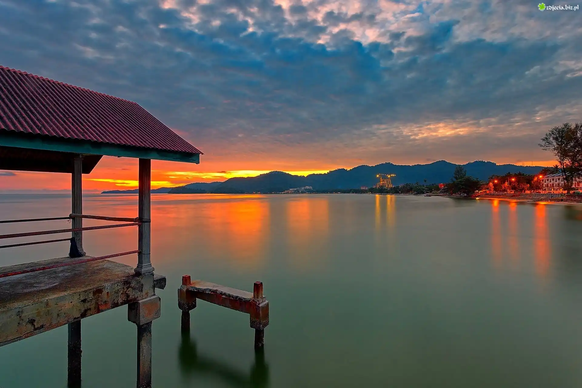 Zdjęcie, Jezioro, Zachód, Słońca, Góry, Hotele