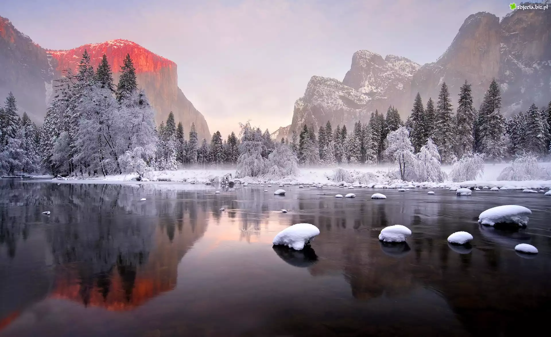 Zachód, Słońca, Chmury, Niebo, Jezioro Góra, Rzeki Drewniany mostek, Zima Jezioro, Odbicie, Gór Ośnieżone, Stoki, Gór, Świerki Gałęzie, Zima, Lód Zamek, Jezioro Zima, Śnieg Kościół, Pokrywa, Śnieżna Góra, Rzeki, Most Jezioro, Odbicie, Drzewa, Góry Zima, Rzeka Bożków, Jezioro Jezioro, Pomost, Horyzont