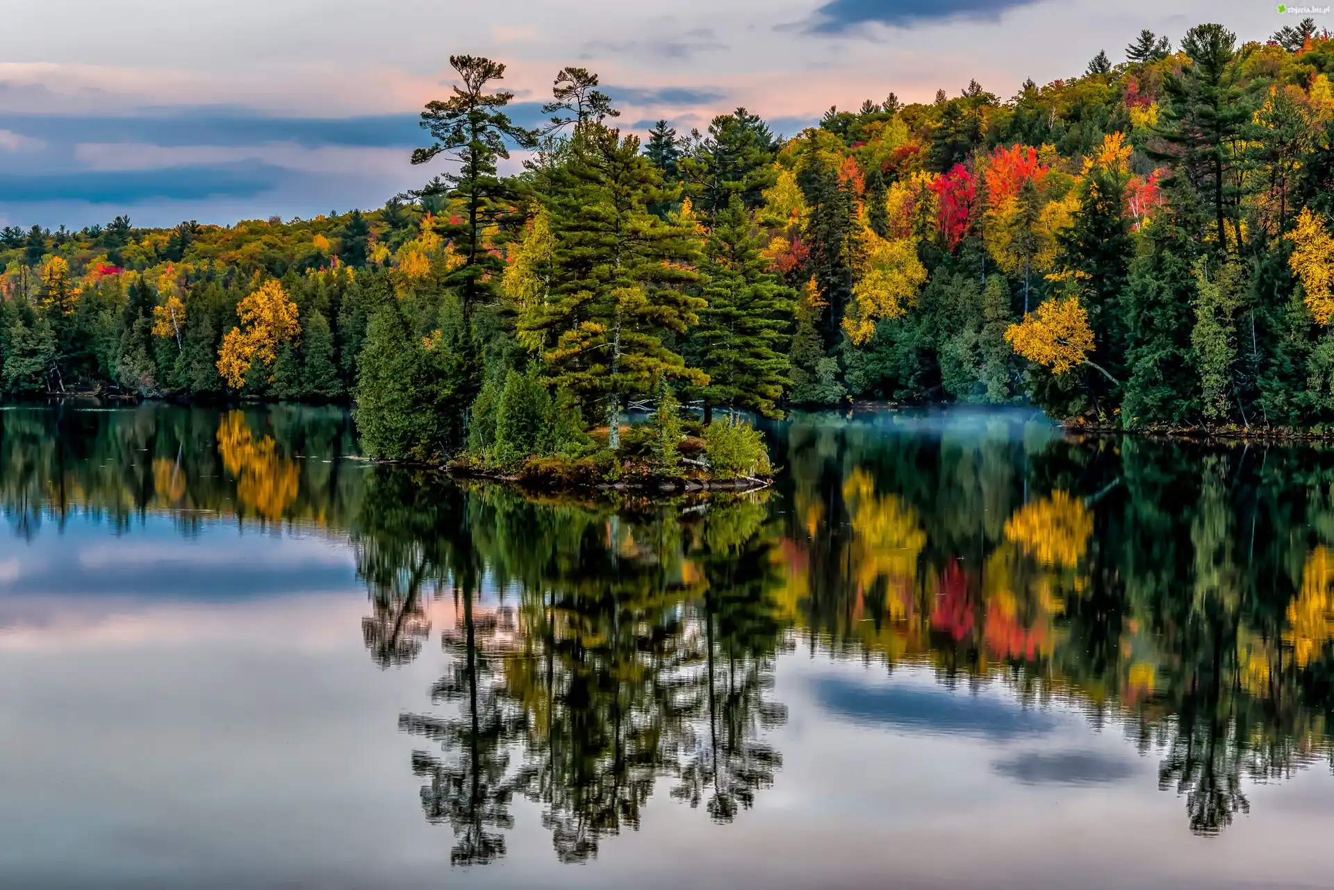Zdjęcie Jezioro, Las, Jesień, Odbicie