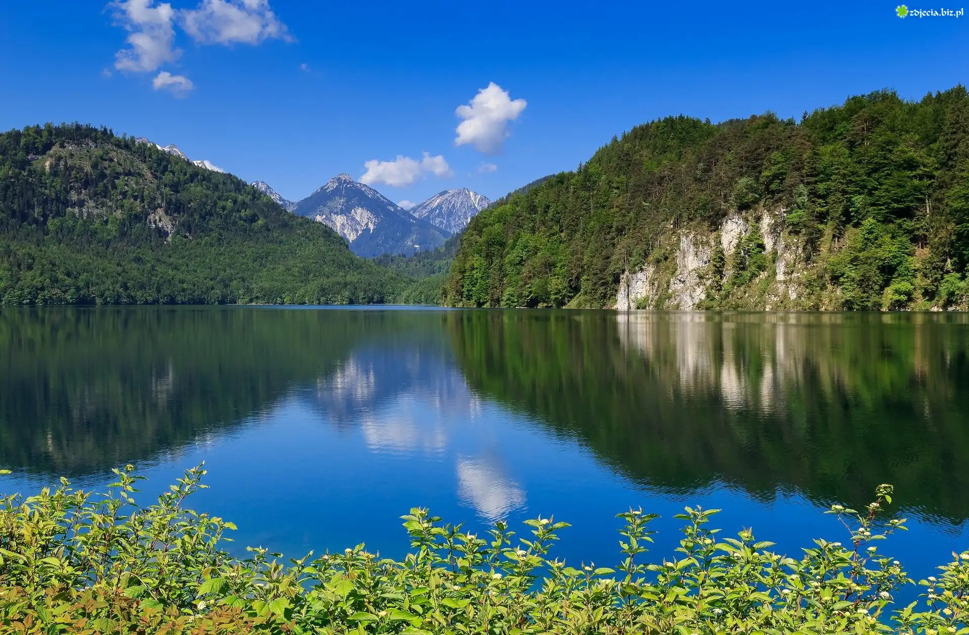 Zdjęcie Niemcy, Bawaria, Jezioro Alpsee, Góry Alpy Bawarskie, Rośliny Jezioro