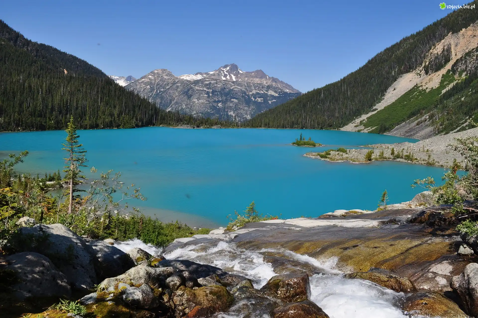 Zdjęcie Jezioro, Skały, Góry, Lasy, Joffre, Kanada