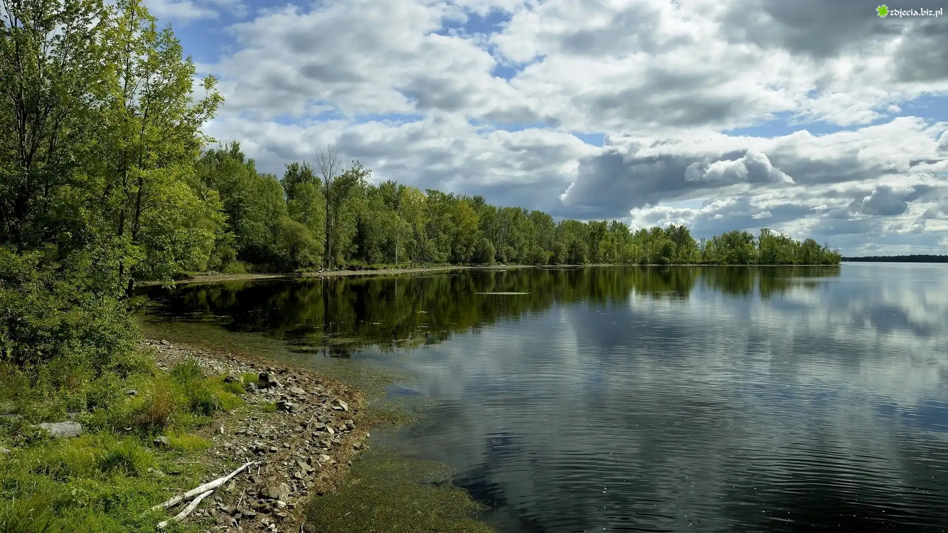Zdjęcie Jezioro, Drzewa, Kamienie, Chmury