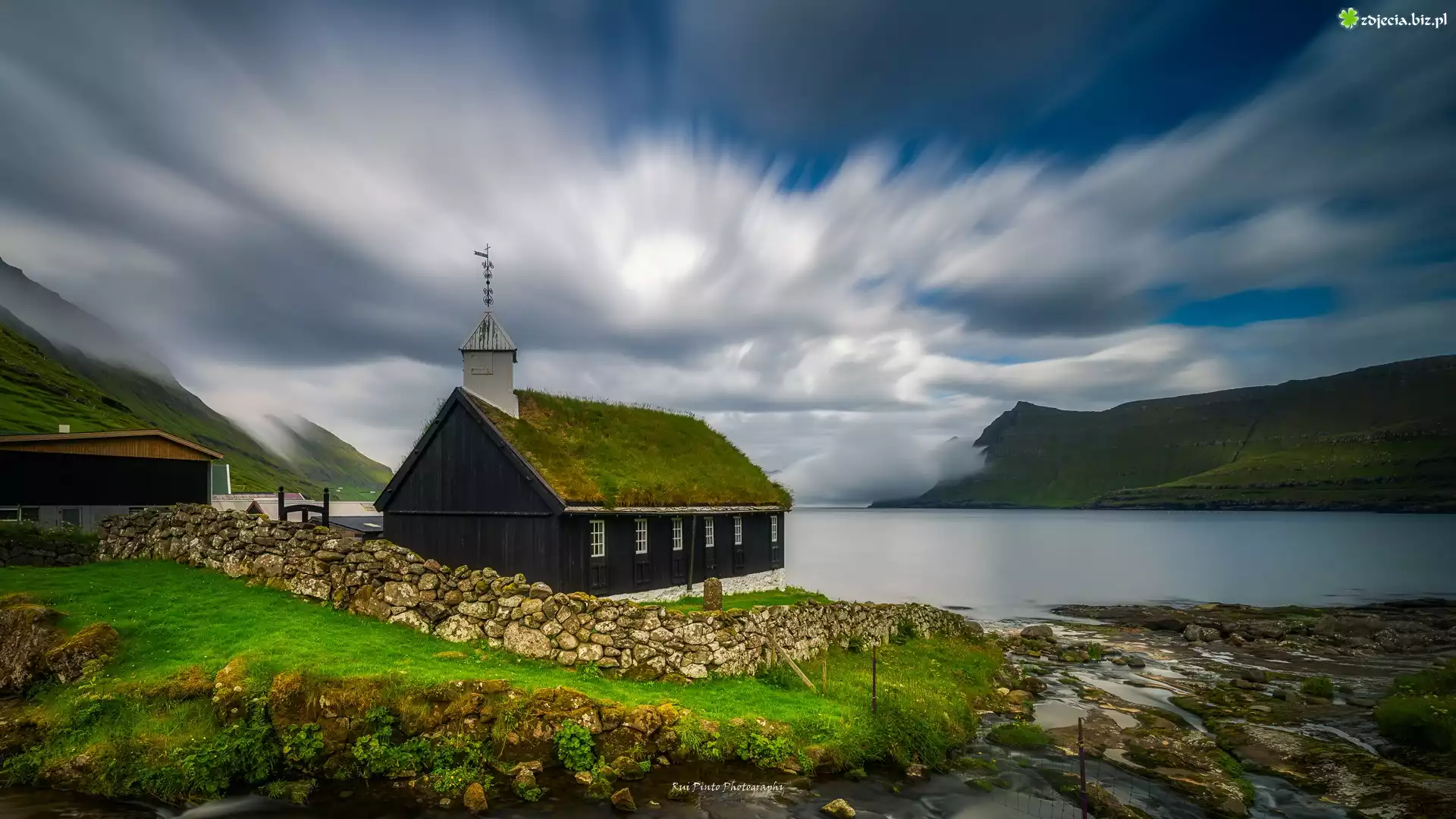 Zdjęcie Góry, Jezioro, Kościół, Mgła, Chmury