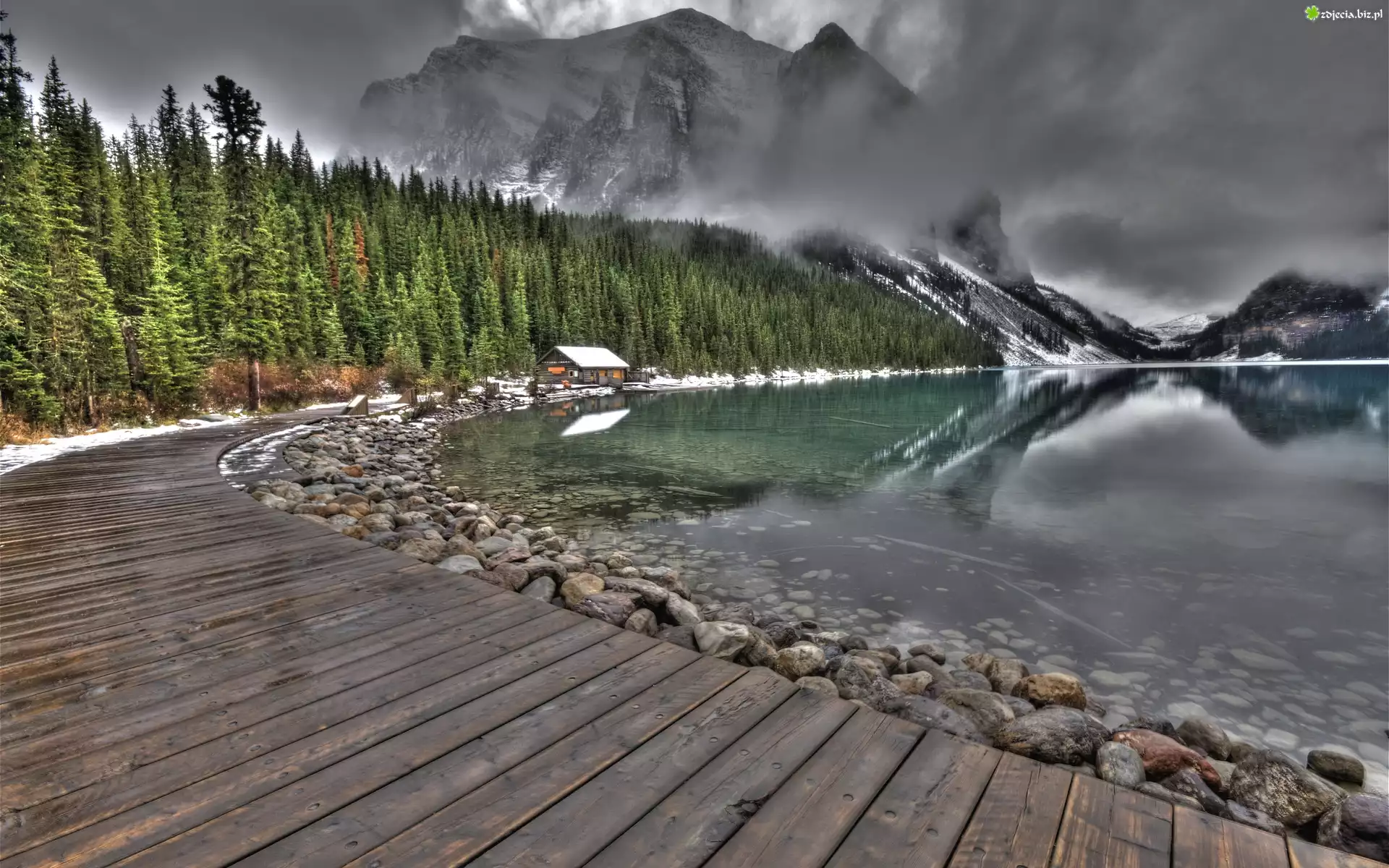 Zdjęcie Jezioro, Góry, Las, Chmury
