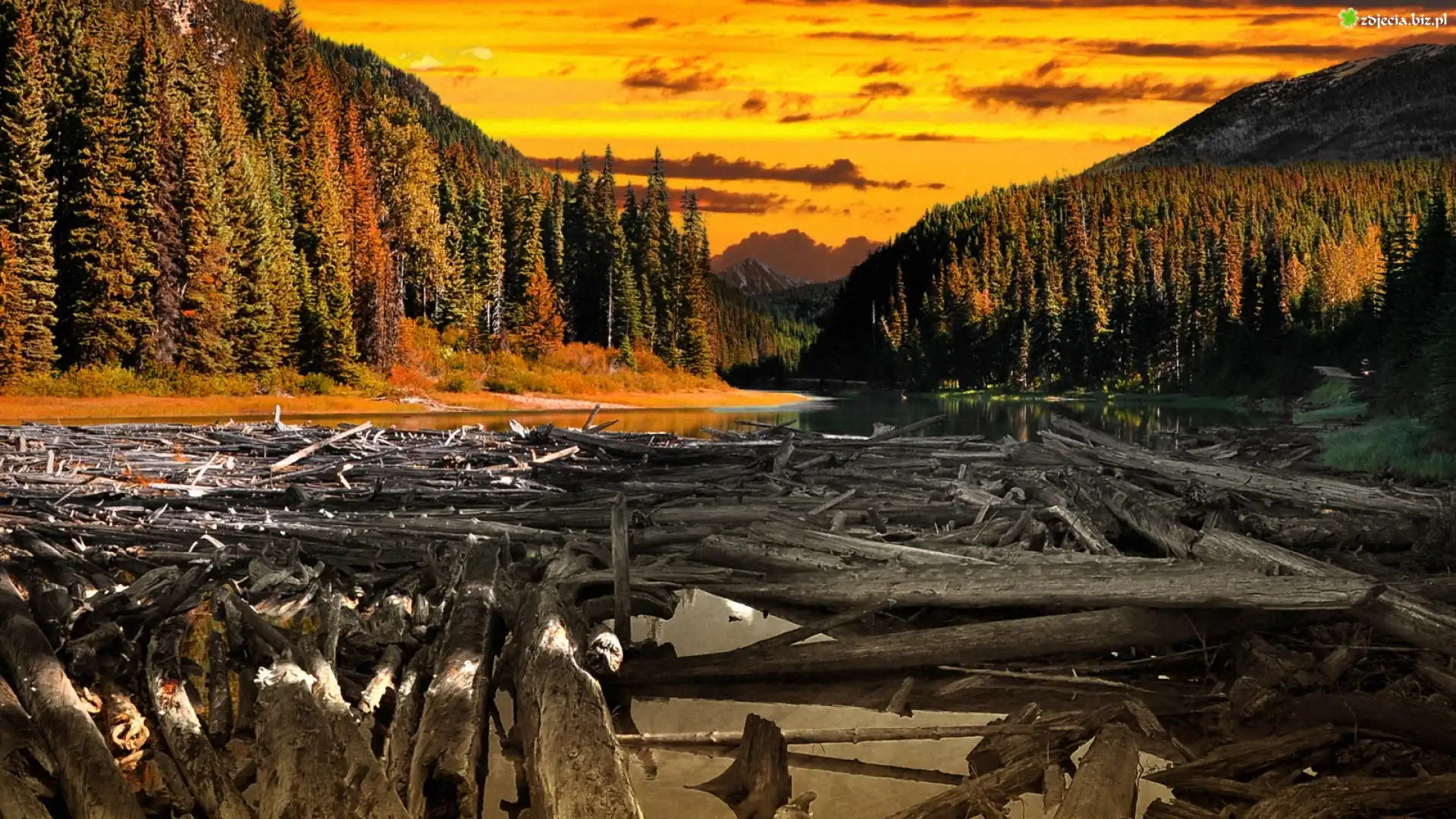 Zdjęcie Las, Jezioro, Jesień