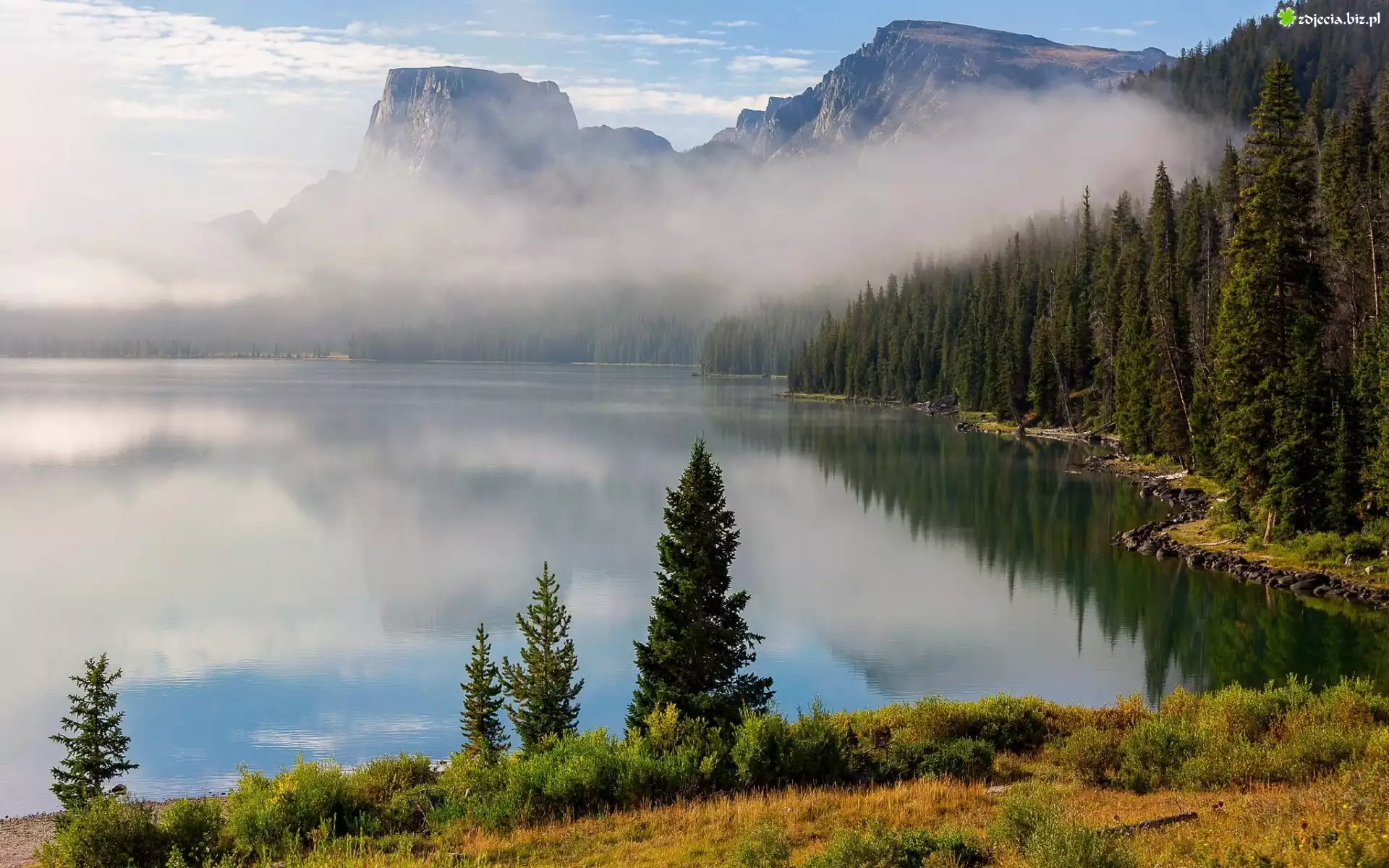 Zdjęcie Jezioro, Góry, Lasy, Mgła