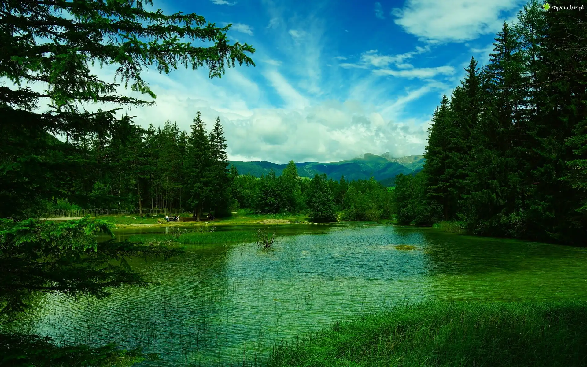 Zdjęcie, Jezioro, Toblach, Włochy, Lasy, Lato