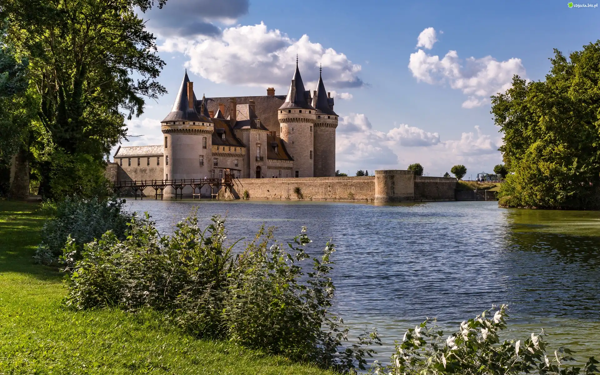 Zdjęcie Francja, Burgundia, Sully Sur Loire, Zamek, Most, Jezioro, Park Jezioro